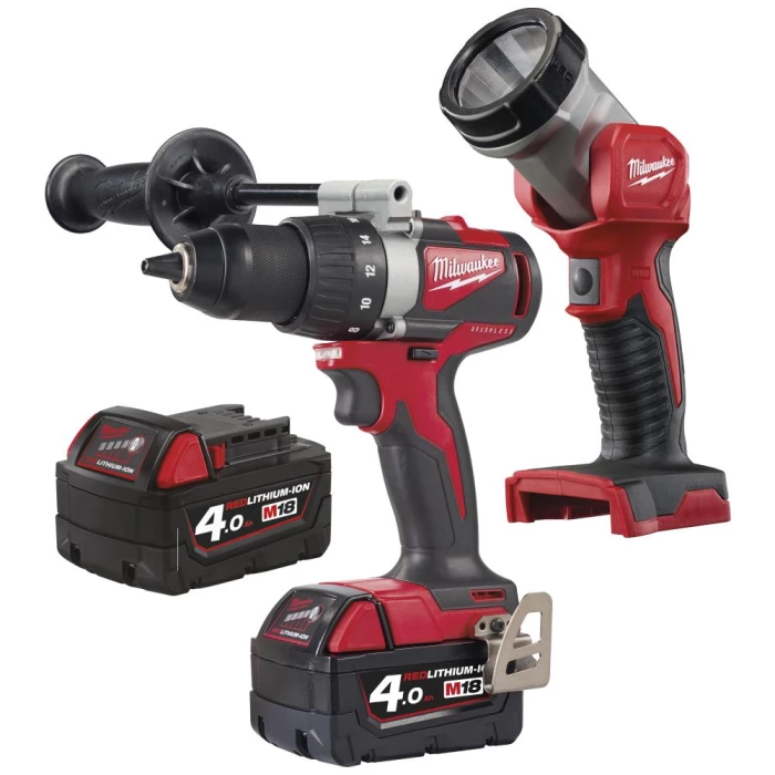 M18 sampak med boremaskine BLDD2 og arbejdslampe TLED. Kulfri bore-/skruemaskine med optimal balance med længde på kun 180 mm, ideel til arbejde over hovedhøjde og på trange steder. Avanceret heavy-duty fæste – 13 mm metalborepatron for hurtigt skift af bit. Strømindikator og LED-lys. Vendbar bælteklips i metal. Redlithium batteri og Redlink elektronik leverer kraft, driftstid og holdbarhed. Fleksibelt batterisystem: passer med alle Milwaukee M18 batterier. Redlink overbelastningsbeskyttelse i både batteri og værktøj giver klassens bedste holdbarhed. Leveres inkl. bælteklips og støttegreb, 2× 18 V 4,0 Ah batterier, multilader og HD boks. LED arbejdslampe med 120 lumen, lyser stærkere og giver et klart lys. LED dioder holder meget bedre end almindelige glødepære. Aluminium og 90° drejeligt hoved, giver god holdbarhed og fleksibilitet. Tåler fugt. Integreret krog så den er let at hænge på væggen, og frigør dermed begge hænder. Leveres uden batteri og lader.