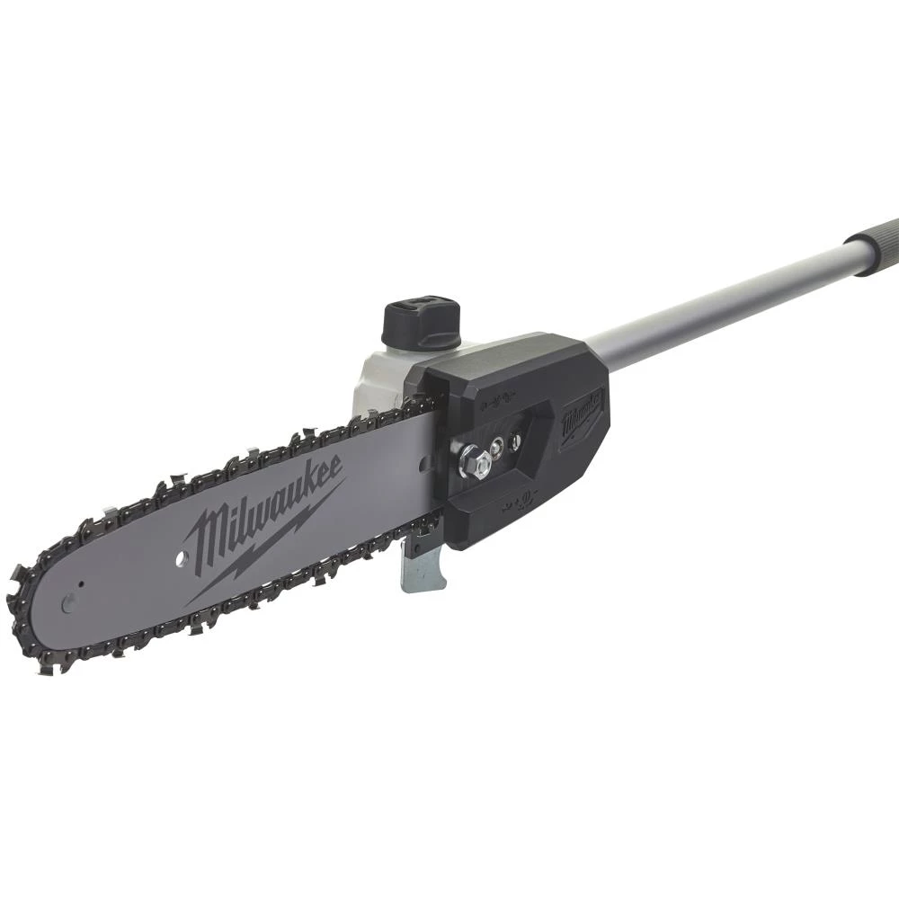 Grensav-forsats 25cm sværd M18 FOPH-CSA. Grensavs-forsats til brug med Milwaukee M18 Fuel havetrimmer-motorenhed. Med ”Quik-Lok” systemet sættes forsatsen nemt og sikkert fast på motorenheden. Grensaven er med 254 mm sværd med automatisk kædesmøring og en krog på hovedet til at trække grene væk. Simpel og let justering og stramning af kæden. Op til 150 snit med et 18 V 8,0 Ah batteri i motorenheden. Rækkevidden kan øges med 91 cm forlænger-forsats (M18 FOPH-EXA).