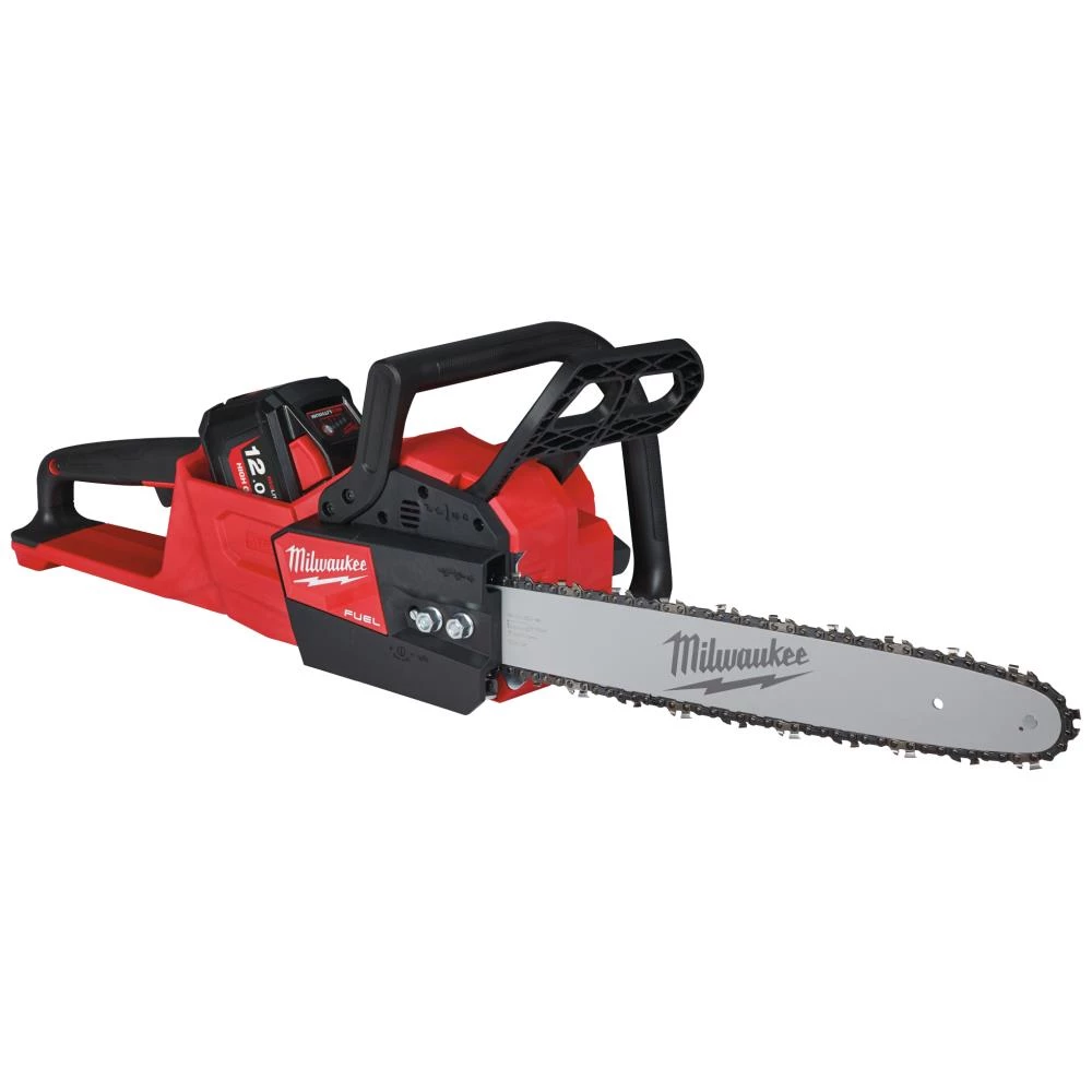 Kædesav med 40 cm sværd FCHS-121 M18 Fuel har kraft nok til at udkonkurrere benzindrevne kædesave på en lang række opgaver. Fuel teknologien tillader saven at opretholde konstant hastighed i de hårdeste opgaver og kan således udmanøvrere benzindrevne kædesave op til 40 cc. Med kulfri Powerstate motor, med Redlink Plus eletronik og Redlithium High Output 12,0 Ah batteriet giver den suveræn ydelse, holdbarhed og driftstid i de mest krævende opgaver. Leverer ekstremt lang driftstid med 150 snit i 100×100 mm fyrretræ på ét 12,0 Ah batteri. Solide metal gear giver klassens højeste moment. Afbryder med variabel hastighed giver fuld kontrol over saven og tillader fuld fart på under 1 sekund. Frontpigge i metal for bedre kontrol under savning. Let at påfylde olie uden at svine og god adgang til tank. Der medfølger olie, kædeværktøj og sværdskede. Fås som tool-only eller med batteri og lader.