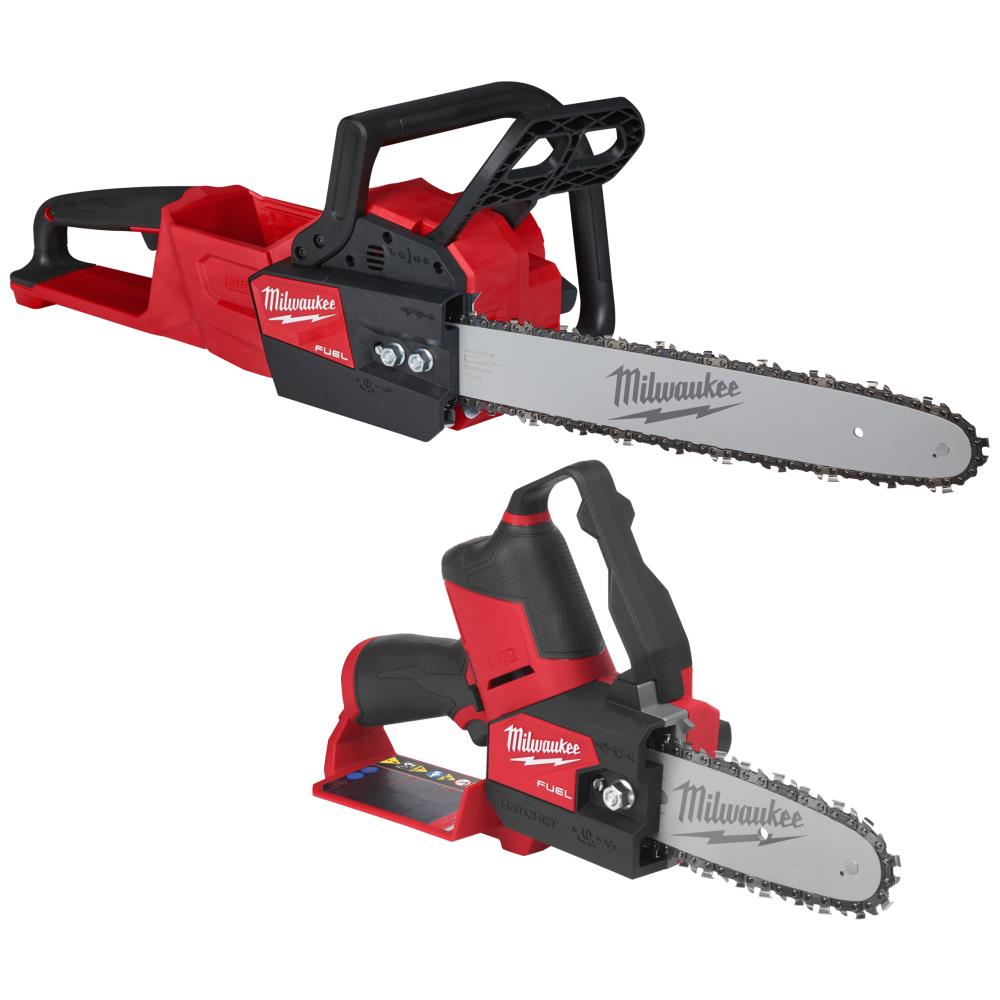 M18 PowerPack med M18 Fuel kædesav med 40 cm sværd og M12 Fuel Hatchet grensav 15 cm. Leveres uden batterier og lader.