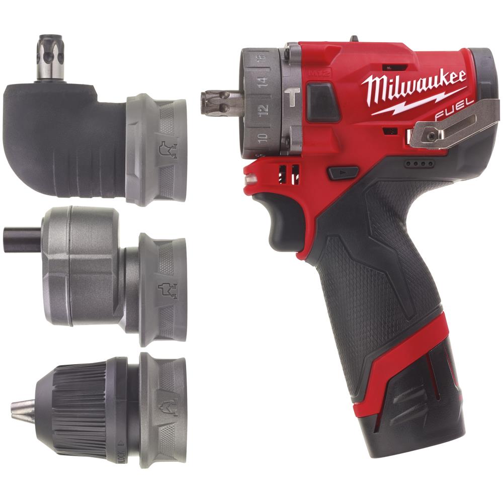 Kompakt M12 Fuel 6-i-1 slagboremaskine med aftagbar/udskiftbar borepatron og kulfri Powerstate motor. Redlink Plus elektronik med avanceret digitalt overbelastningsbeskyttelse. 1/4″ hex fæste bag borepatronen for længde på kun 125 mm ved behov. Maks. drejningsmoment 44 Nm. Ubelastet hastighed 0-450/0-1.700 omdr./min og 0-25.500 slag/min. Maks. borekapacitet i træ/stål/beton: ø35/13/13 mm. Strømindikator og LED-lys. Vægt med batteri 1,2 kg. Leveres med 2 stk 2,0 Ah Redlithium-Ion batterier, lader, 13 mm aftagbar borepatron, 1/4″ hex vinkelborepatron, 1/4″ hex offset-borepatron og HD-Box kuffert.