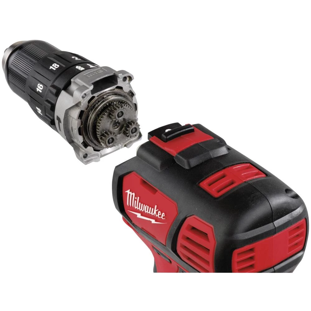 Kompakt M18 slagboremaskine. Kun 198 mm lang. 13 mm borepatron for hurtigt skift af bor og bits. 17-trins momentindstilling plus boretrin, 60 Nm, 450/1800 omdr./min. Slagtal 28.800 slag/min. Redlink elektronik beskytter både værktøj og batteri mod overbelastning og overophedning, hvilket giver revolutionerende holdbarhed. Softgreb håndtag og bælteclips. Indbygget LED-lys der oplyser arbejdsområdet. Strømindikator der viser hvor meget strøm, der er tilbage på batteriet. Fås som tool-only eller med batterier og lader.