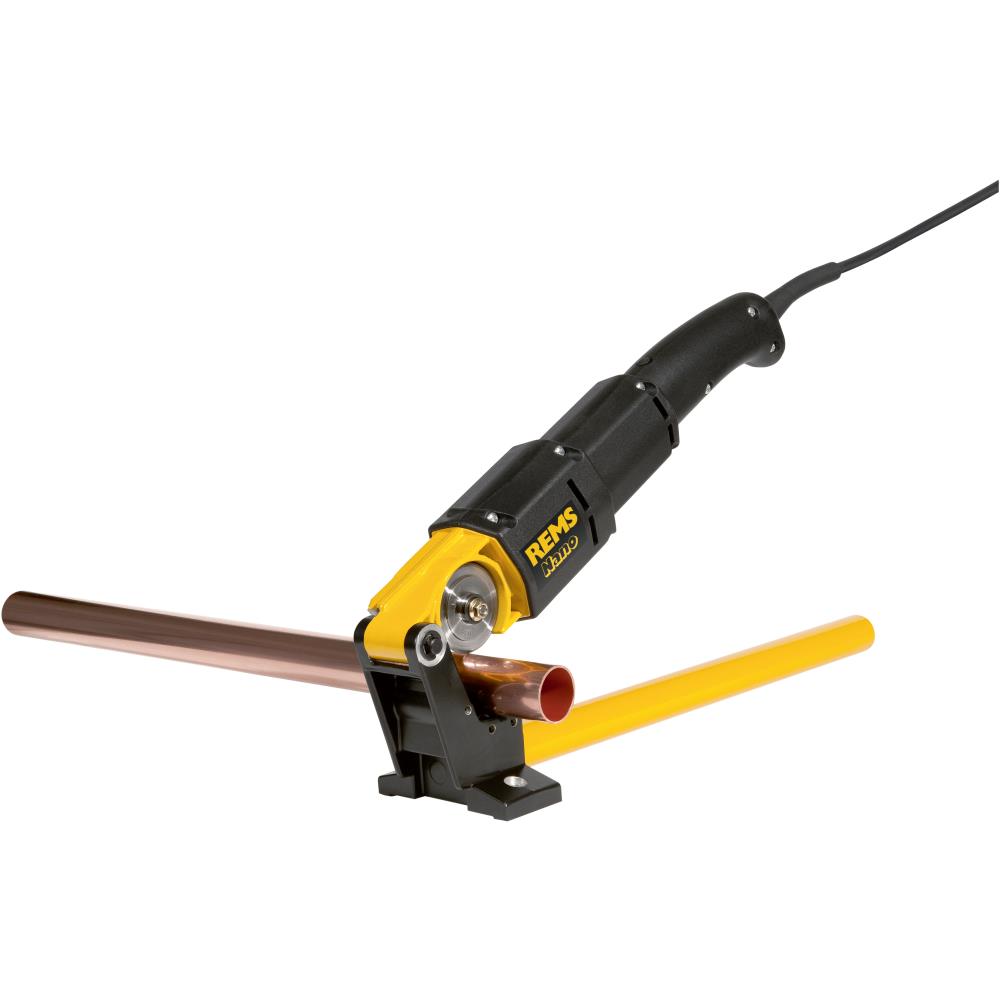 Rems Nano skæring op til DN40. Let, hurtig. Ideel til pressfitting-systemer. Retvinklet, som krævet. Uden spåner, ingen spåner i rørsystemet. Uden udvendig grat, ingen beskadigelse af O-ringen pga. udvendig grat. Tør overskæring, derfor ingen beskadigelse af O-ringen med smøremidler. Hurtig, uden at skade rørmaterialet ved overophedning.