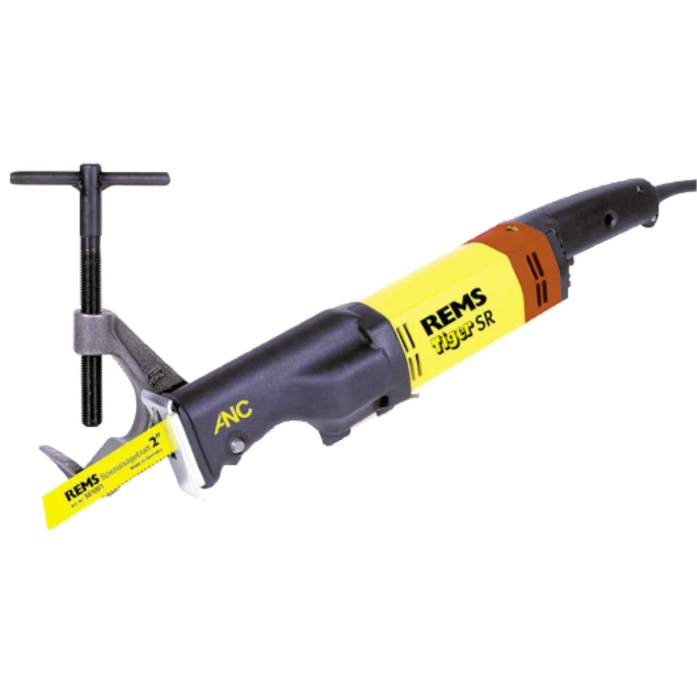 Stærkt, brugervenligt elektroværktøj med kraftoverførende rørholder til nem, hurtig og vinkelret savning på stedet, uden skruestik. Også til universal savning i frihånd. Kun 3,0 kg. Ideel til montage, nedrivning, reparation. Stålrør og andre rør Ø = 6″, 160 mm. Andre metalprofiler, træ med søm, palletter = 250 mm. Gennemskæring af plastrør Ø = 1600 mm. Til seje materialer, fx rustfrie stålrør, hårde støbejernsrør mv, benyttes Rems Tiger ANC SR med indstillelig elektronisk, hastighedsregulering (1-6 speed regulation).