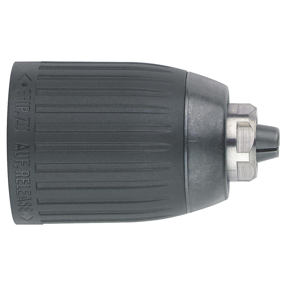 Futuro Plus H1 borepatron specielt udviklet til boremaskiner med spindelstop. Kunststofmuffe uden holdering. Uden nøgle af hensyn til hurtigt værktøjsskift. Ikke slagborefast. Gennemboret med sikringsskrue til R+L-maskiner. Med nøgleflade til montering og afmontering.