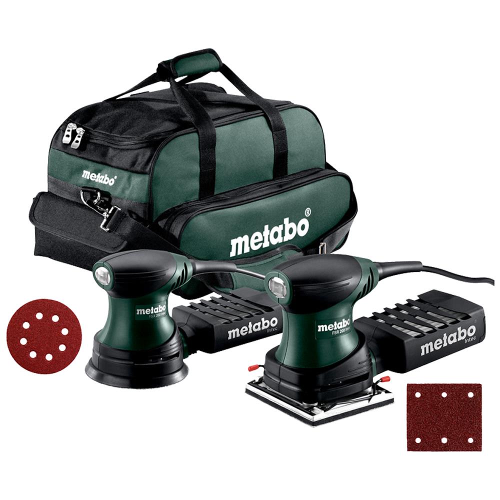 Maskinsæt med rystepudser og excentersliber. FSR 200 Intec rystepudser er let og handy maskine til bekvem enhåndsbetjening: støvbeskyttede kuglelejer sikrer lang levetid på maskinen, støvsamlekassette med filter til arbejde uden tilslutning af udsugning. FSX 200 Intec excentersliber er let og handy maskine til bekvem enhåndsbetjening: optimalt vægt/ydelsesforhold for arbejde, der ikke trætter, støvbeskyttede kuglelejer sikrer lang levetid på maskinen, støvsamlekassette med filter til arbejde uden tilslutning af udsugning. Leveres inkl. 2× kuffert, værktøjstaske, 25 slibeark med burrelås ø125 mm, 10 slibeark med burrelås 115×103 mm P40.