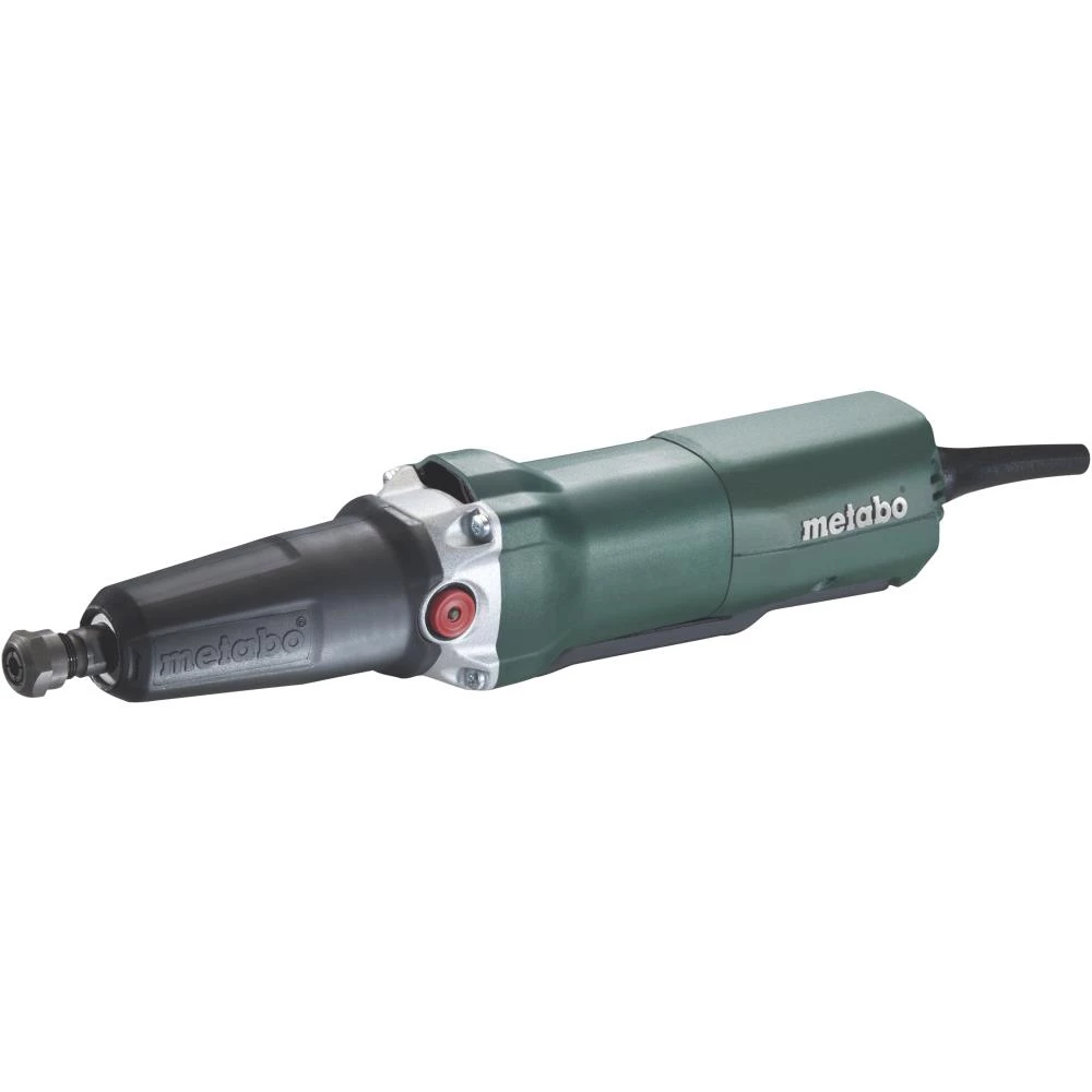 Paddle-kontakt med dødmandsfunktion: Sikker håndtering på grund af ergonomisk integreret kontakt med skridsikker struktur. Med lange slibespindler – perfekt til arbejde på vanskeligt tilgængelige steder. Spindellås for nemt værktøjsskift. Lejeflange af trykstøbt aluminium for lang levetid af maskinen. Vario-Constamatic (VC)-elektronik til arbejde med hastigheder, der passer til materialet, og som forbliver konstante under belastning. Indstillingshjul til forvalg af hastigheden. Elektronisk sikkerhedsfrakobling af motoren, hvis det indsatte værktøj blokerer. For sikkerhed under arbejdet. Genstartsikring: Forhindrer utilsigtet start af maskinen efter strømafbrydelse. Elektronisk overbelastningssikring for lang levetid. Præcis opspænding til stationær brug. Aftagelig beskyttelseskappe af gummi for bekvemt og sikkert arbejde. Slankt design for optimal håndtering. Meget præcis spændetang for eksakt rotation. Metabo Marathon-motor med patenteret støvbeskyttelse for lang levetid. Tomgangshastighed 10.000 – 30.500 omdr./min. Nominel optagen effekt 710 W. Afgiven effekt 430 W. Hastighed ved mærkebelastning 24.000 omdr./min. Spændehalsdiameter 43 mm. Spændetangens spændehul 6 mm. Vægt uden netkabel 1,6 kg. Kabellængde 4 mtr. Leveres inkl. spændetang 6 mm, beskyttelseskappe af gummi og 1 gaffelnøgle.
