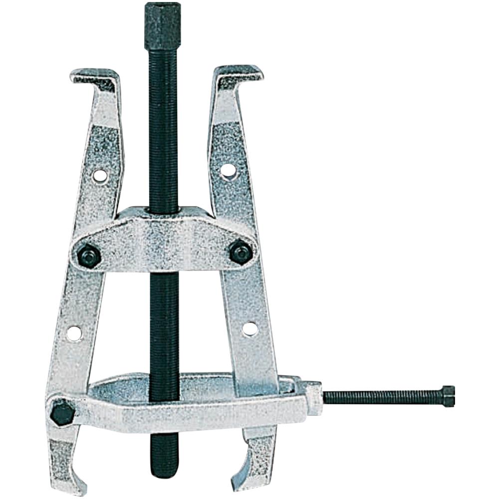 Aftrækker med spændebøjle, som sikrer at armene presses sammen under demontering. Designet byder på arme med dobbelte fødder, som er nedfræsede og spidsede samt slanke gribeender, som gør aftrækkeren velegnet til opgaver hvor pladsen er trang. Fås i forskellige dimensioner.