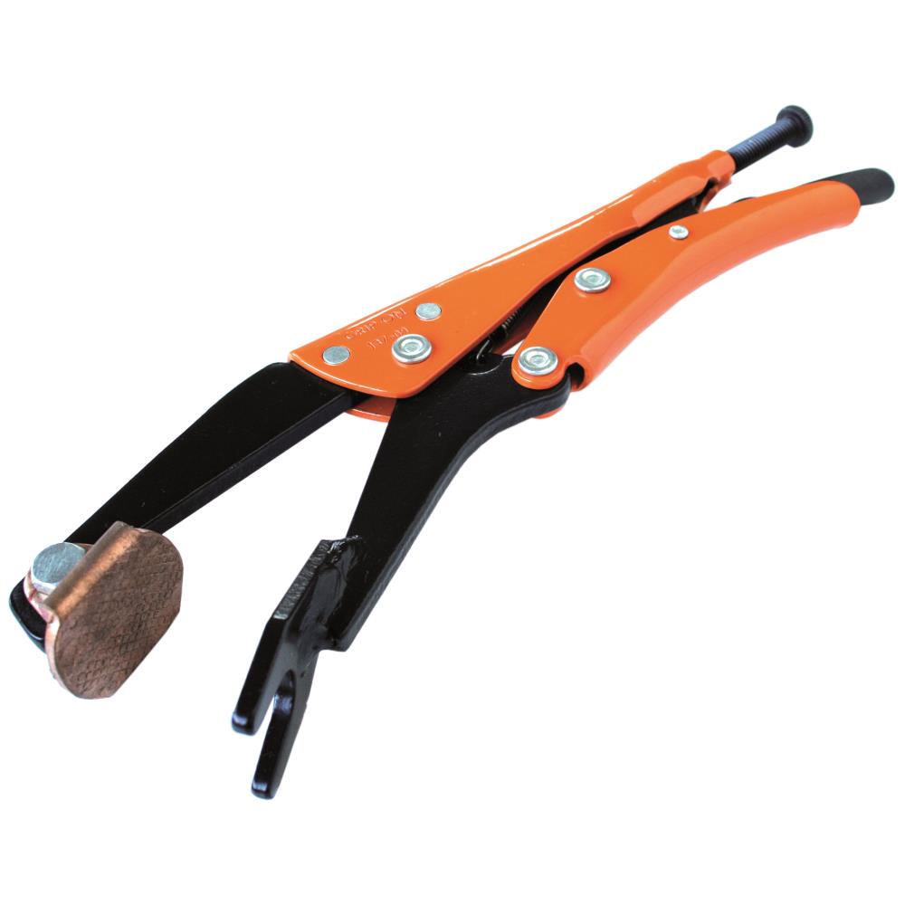Punktsvejsetang med bevægelig fod af solid kobberplade afhjælper problemet med at “brænde igennem” ved punktsvejsning af tynde metalpaneler etc. “Splatter resistent” kobber hæfter ikke svejsningen og kan tilmed være behjælpelig med opfyldning af allerede eksisterende huller. Med den U-formet bevægelig kæbe er det muligt at give et jævnt tryk under punktsvejsningen. En tidsbesparende svejsetang med indstillingsskrue og hurtigudløser til alle der udfører punktsvejsninger. Dybde 70 mm.