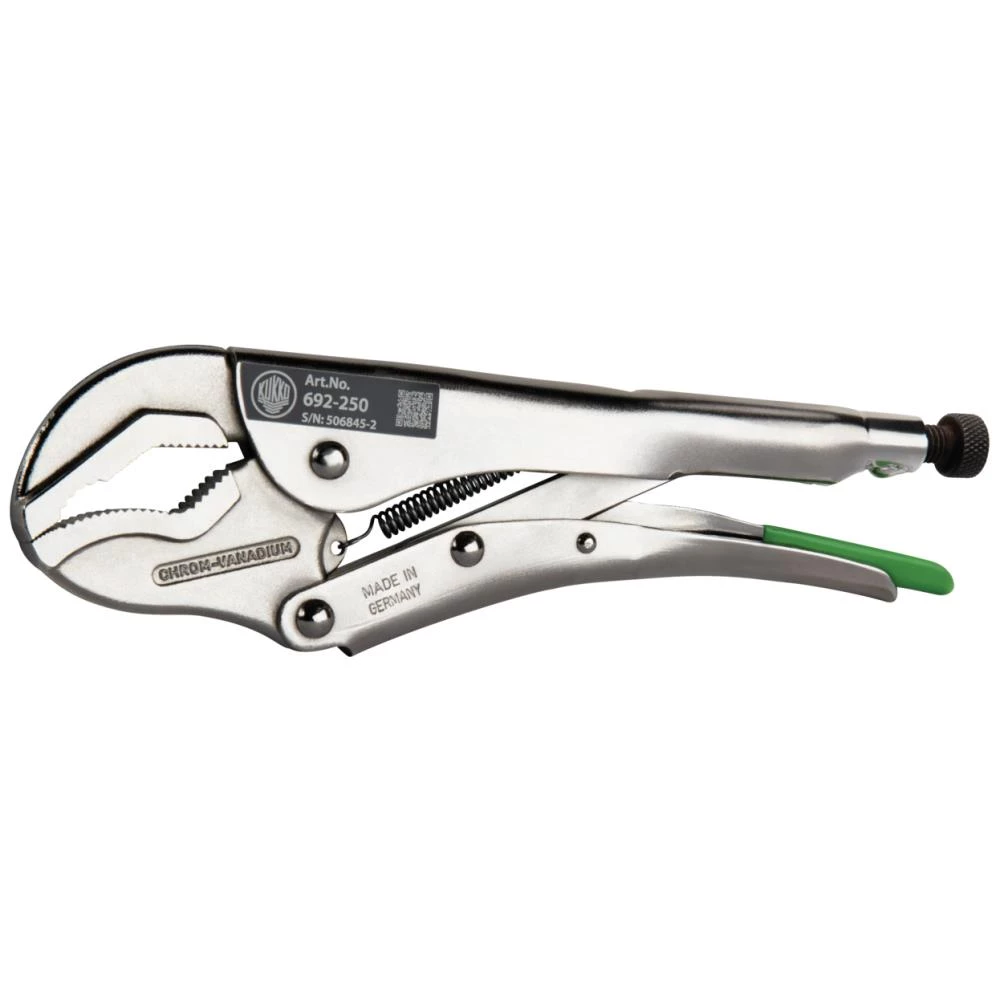 Ideal-holdetang til fastholdelse af runde, profil- og flade materialer i værksteder, industri og håndværk. Kombineret kæbeform med firepunkts støtte. Robust konstruktion af højstyrke-specialstål med slidstærke kromvanadiumstålkæber. Hurtigspændingsmekanismen muliggør hurtig fastgørelse. Tangen kan betjenes med én hånd.