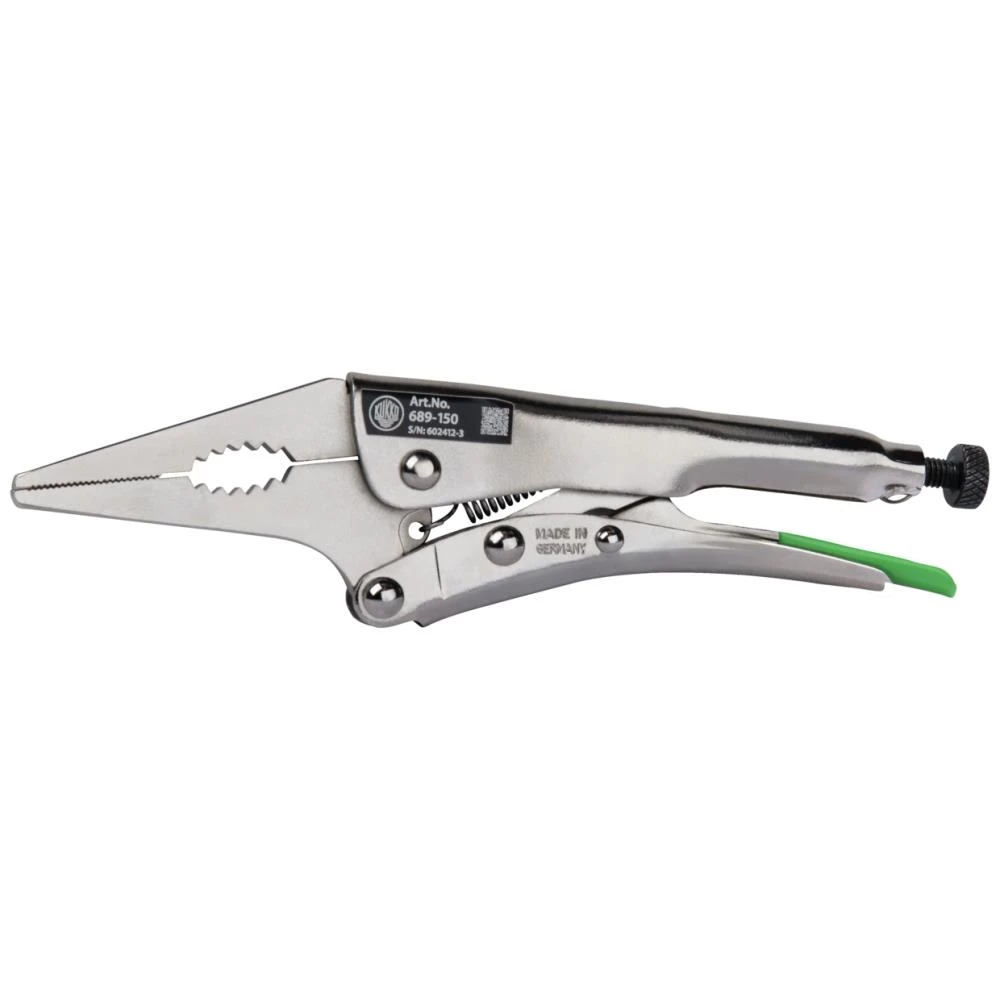 Holdetang med lang kæbe til opspænding og fastholdelse i snævre områder i værksteder, industri og håndværk. Robust konstruktion af højstyrke-specialstål med slidstærke kromvanadiumstålkæber. Hurtigspændingsmekanismen muliggør hurtig fastgørelse. Tangen kan betjenes med én hånd.