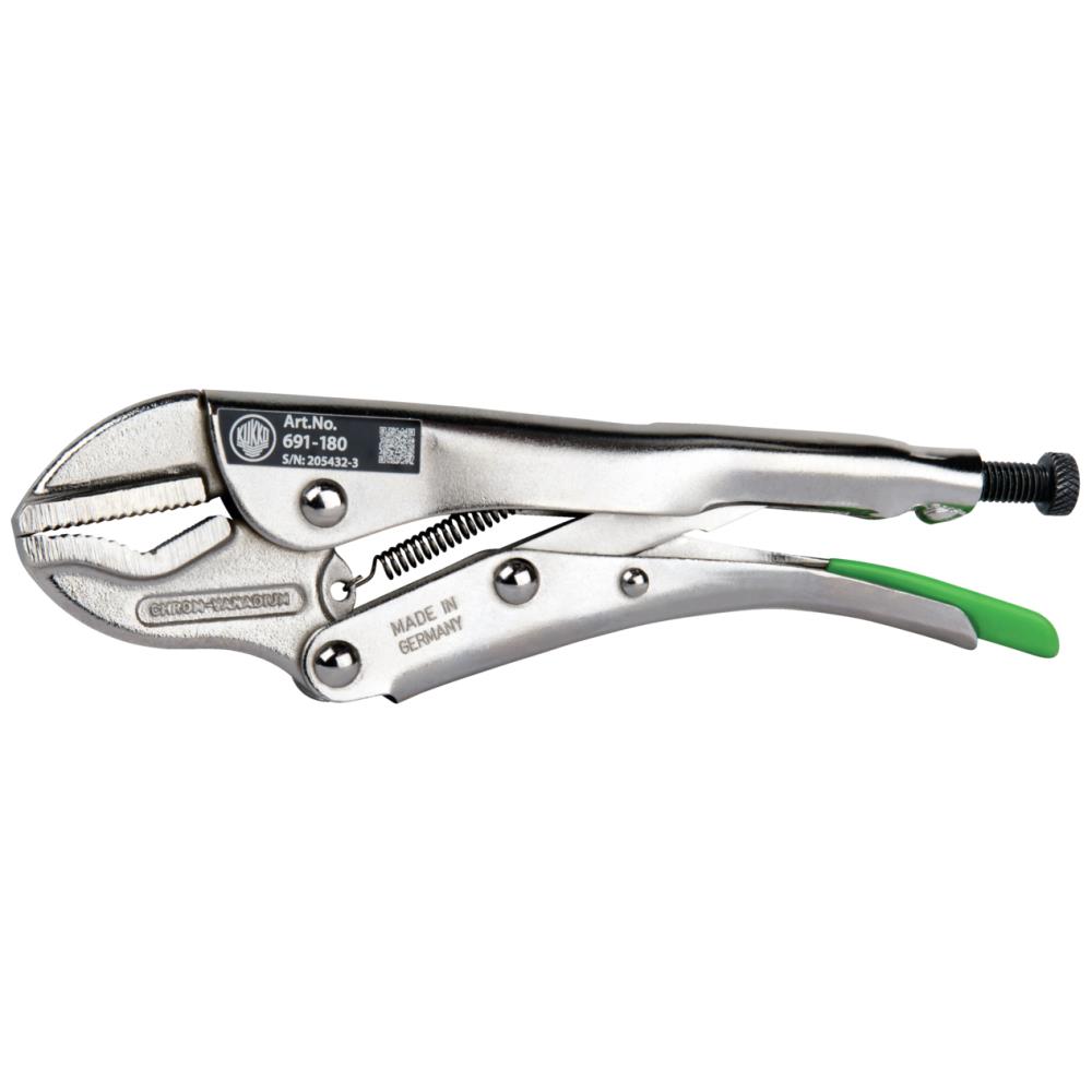 Holdetang med prisme til fastholdelse af runde, profil- og flade materialer i værksteder, industri og håndværk. Trådrille i den øverste kæbe gør det muligt at gribe og føre søm og tråde fra fronten. Robust konstruktion af højstyrke-specialstål med slidstærke kromvanadiumstålkæber. Hurtigspændingsmekanismen muliggør hurtig fastgørelse. Tangen kan betjenes med én hånd.
