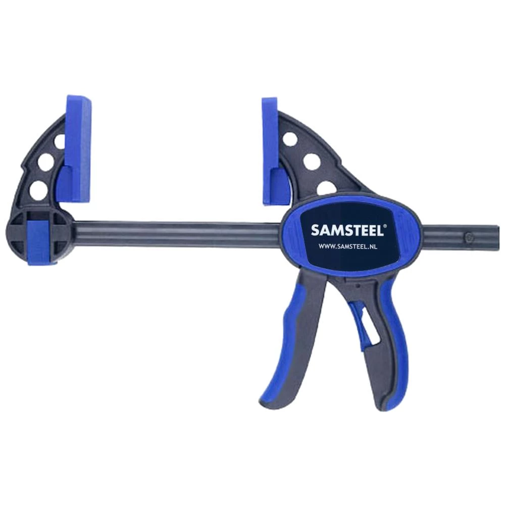 Skruetvinge med ergonomisk tokomponent håndtag med udløserknap for ubesværet opspænding og udløsning af klemmen. Nem at betjene med én hånd. Fås i flere varianter.