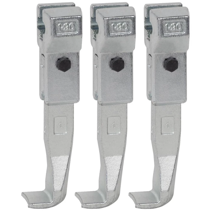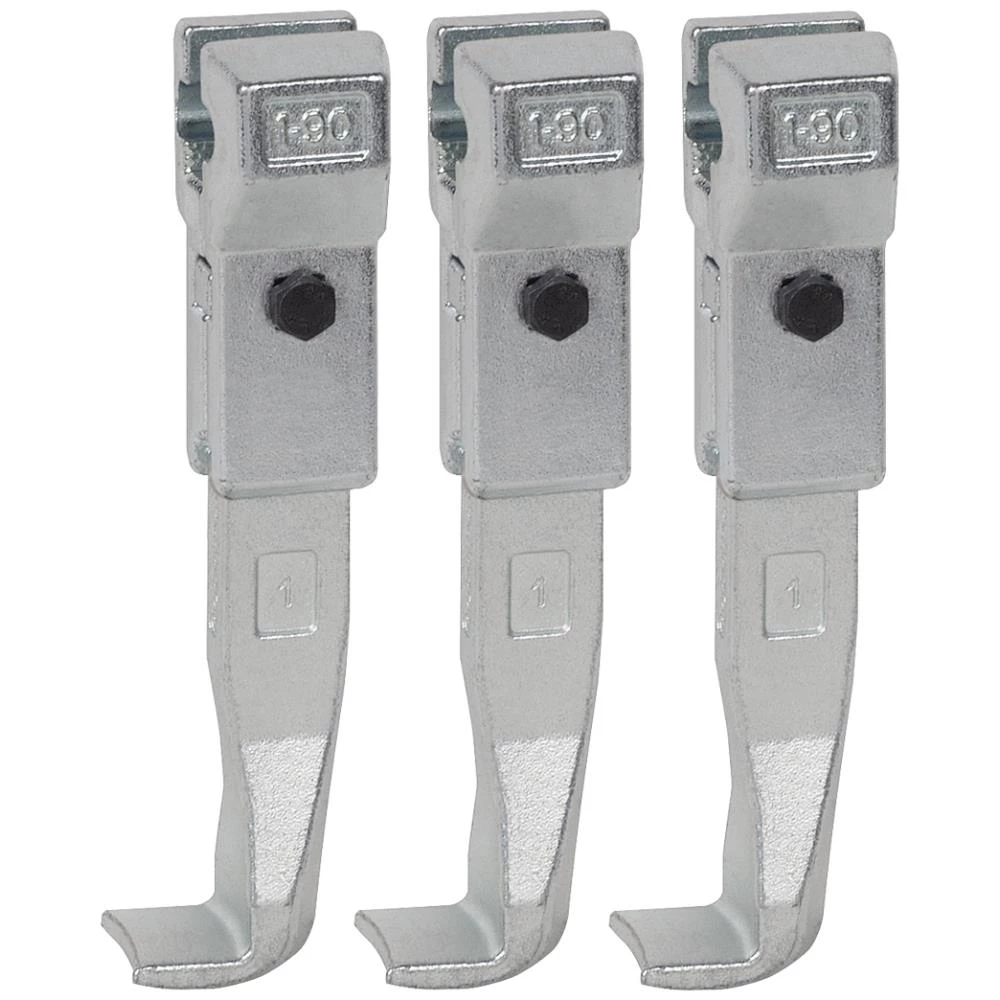 Serie 0-S aftrækningskroge (sæt med tre stk.) til aftrækning af lejer, tandhjul, skiver etc. Trinløst forskydelige aftrækningskroge på traversen. Som reservedel eller supplement til Kukko-aftrækker. Fås til forskellige aftrækkere.