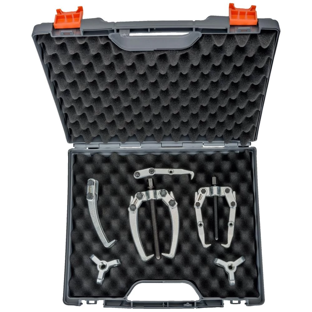 Mini-aftrækkersæt 4579 i plastkuffert. Fremstillet af specialstål. Galvaniseret finish. Sættet indeholder 4-armet aftrækkere, 2 kroppe og 2 reservearme. 4543-2: 2-armet aftrækker 10 mm til 70 mm. 4543-3: 2-armet aftrækker 10 mm til 90 mm. 4543-1020/B: Krop til 3-armet aftrækker 70×74 (4543-20). 4543-30/B: Krop til 3-armet aftrækker 90×84 (4543-30). 4543K220: Løs arm til 3-armet aftrækker 70×74 (4543-20). 4543K330: Løs arm til 3-armet aftrækker 90×84 (4543-30).