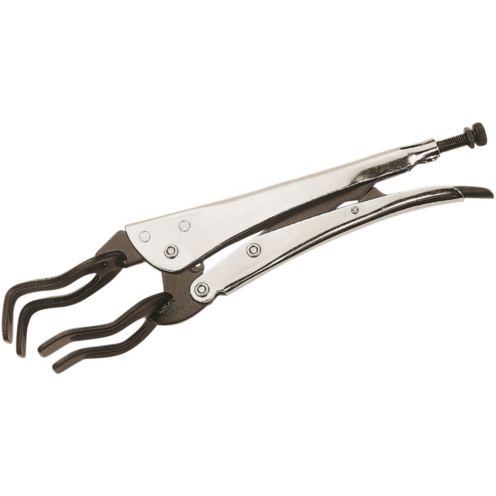 Svejsetang specielt velegnede til svejse- og monteringsopgaver af runde emner og rør. Forkromet for bedre rustbeskyttelse. U-formede dobbeltkæber gør det muligt at holde to rør mod hinanden for optimal svejsning. Enhåndsbetjent stilleskrue og hurtigudløser.
