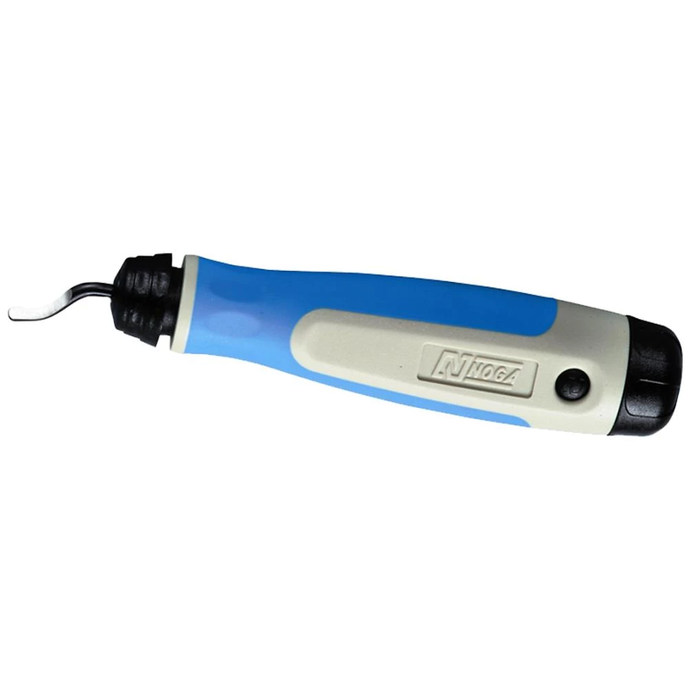 Afgratersæt med store, udskiftelige HSS-knive til forskellige afgratningsopgaver. Arbejdsrotering med højre hånd. Knivene er monteret drejeligt i blødt plasthåndtag og tilpasser sig automatisk efter emnets form. Til rør, huller, kanter m.m. Leveres med knive S10, S20 og S35.