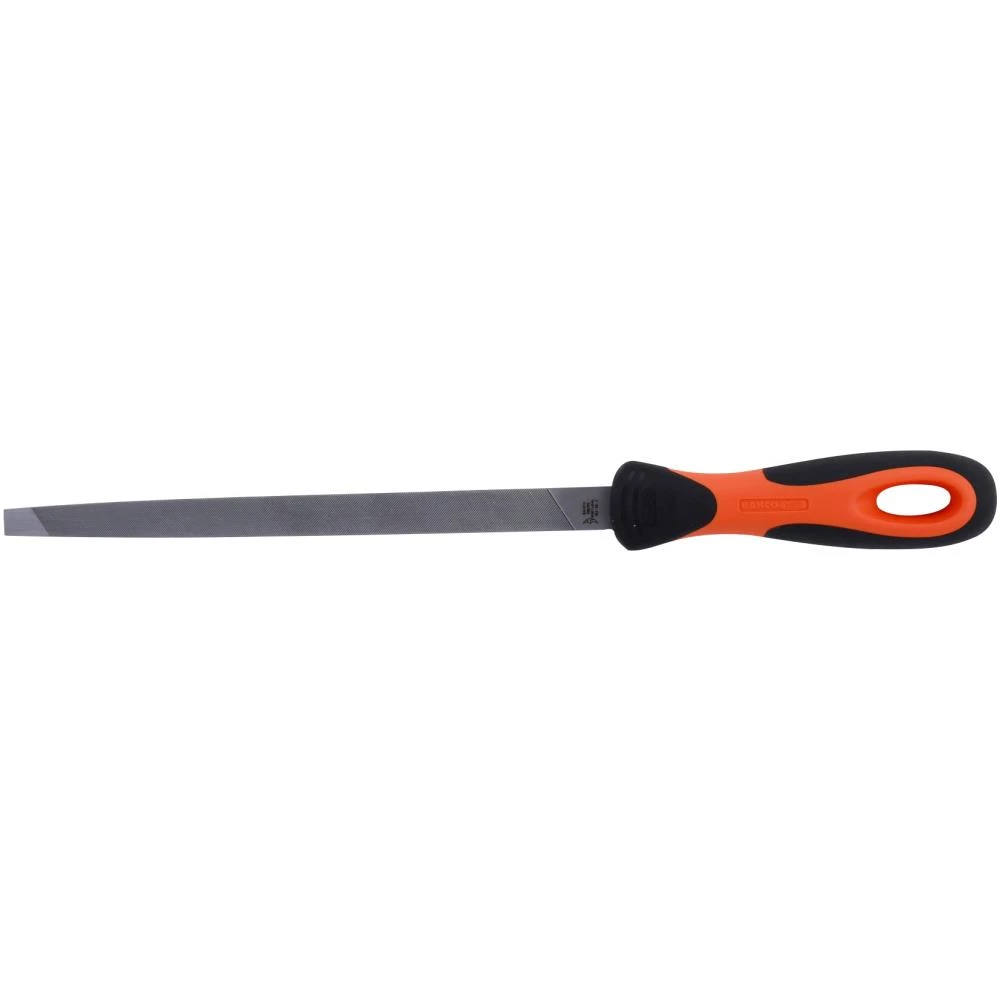 Filehæfte udviklet i henhold til Bahcos Ergo program. Til skærpning af krydsfilede save med 60° tandvinkel. Ligesidet trekantprofil med aftagende bredde mod enden. Enkelthuggede flader og kanter. De angivne mål refererer til filens største mål. SP forpakning. Fås i flere varianter.