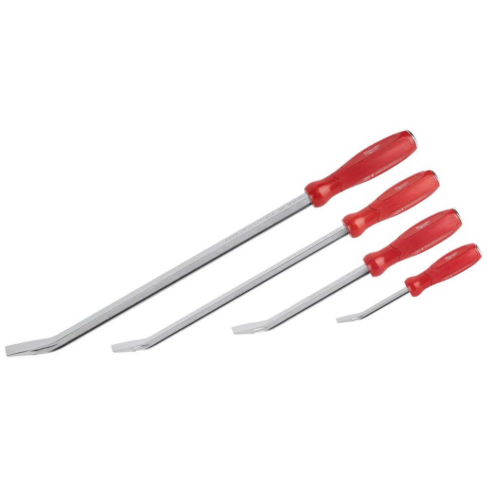 Brækjern-sæt med fire dele. Brækjern med I-design håndtag og meltalkerne. Hammer-slagpunkt på skaftet og ergonomisk og komfortabelt greb. Skaftet er forkromet for ekstra holdbarhed. Kurvet krogdesign reducerer skader ved sømudtrækning. Sættet indeholder fire størrelser: 200 mm, 300 mm, 450 mm og 600 mm.