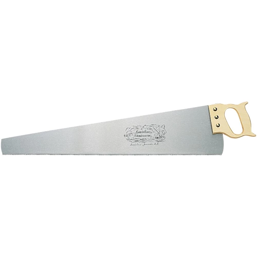 Musiksav “Stradivarius”, med blankpoleret klinge. Lige ryg og uslebne tænder samt lakeret. Traditionelt træhåndtag. Totallængde inkl. håndtag 870 mm.