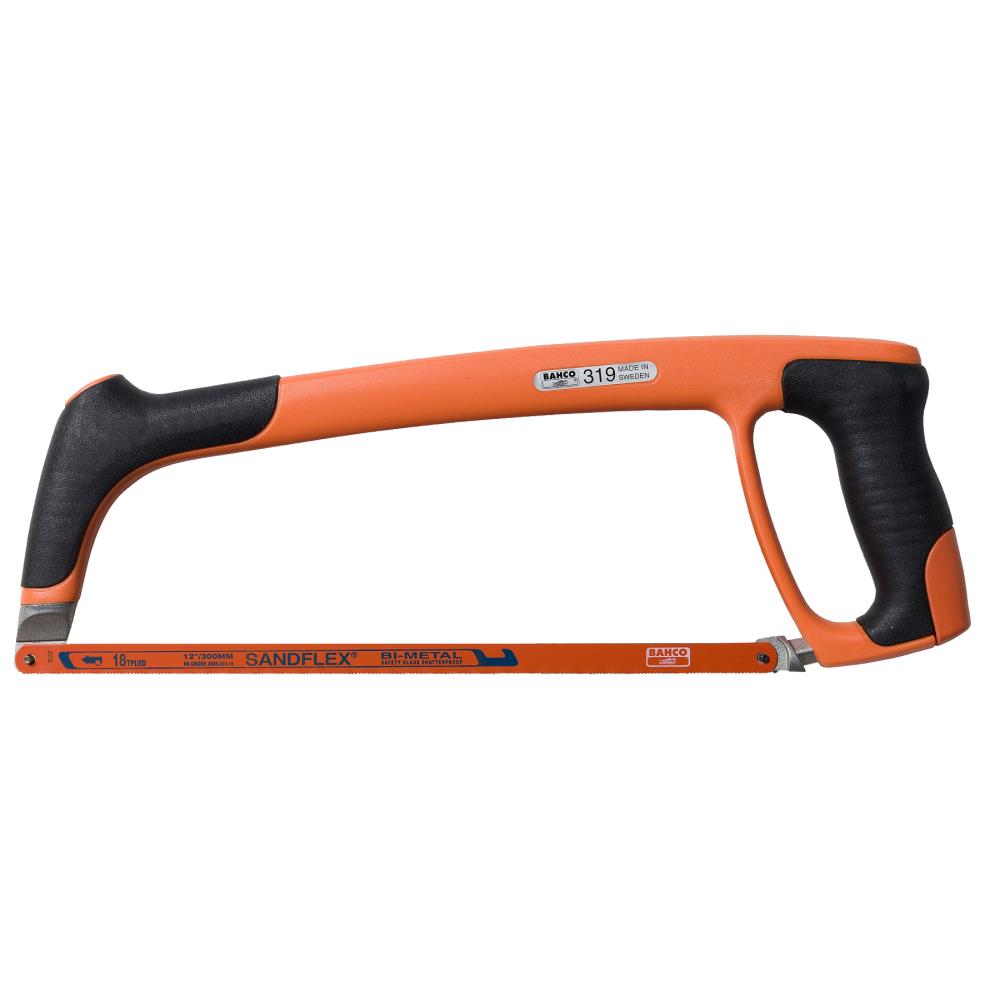 Professionel og unik nedstrygerbue med let, men stærk stålprofil. Komfortabelt gummibeklædt håndtag med tommelfingerplacering, som sikrer et solidt greb. Høj klingespænding på 100 kg giver præcise og lige snit. Klingen kan opspændes i en vinkel på 55°, opspændingsmekanismen er integreret i håndtaget. Leveres med Sandflex bimetalklinge 24 tpi.