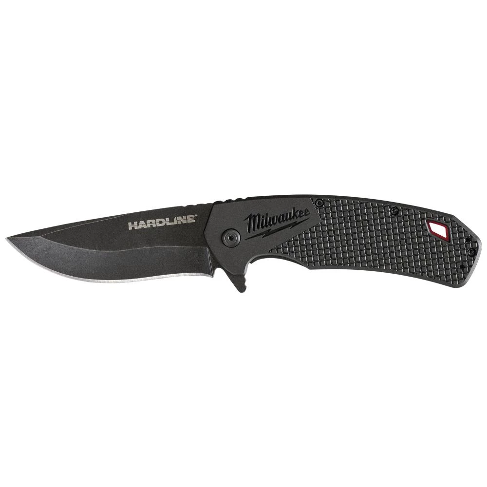 Hardline foldekniv med knivblad i premium D2-stål, som gør den modstandsdygtig overfor rust og giver et ekstremt hårdført knivblad. Ekstremt spids kniv. Sikkerhedskniv – skal åbnes med to hænder. Knivbladet låses i åben position. Håndtag i glasfiber-forstærket nylon med skelet i rustfrit stål. To separate låsepunkter – ét til åbning og ét til lukning. Hul til nøglesnor. Bælteklips kan monteres til både højre- og venstrehåndsbrug. Fås i flere varianter.