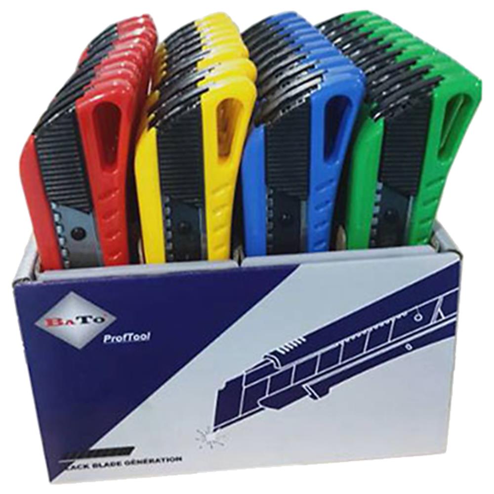 Hobbykniv med 18 mm Black Finish Ultra skarp bræk-af blad og magasin. Kniven fås i rød, gul, grøn eller blå og i flere varianter.