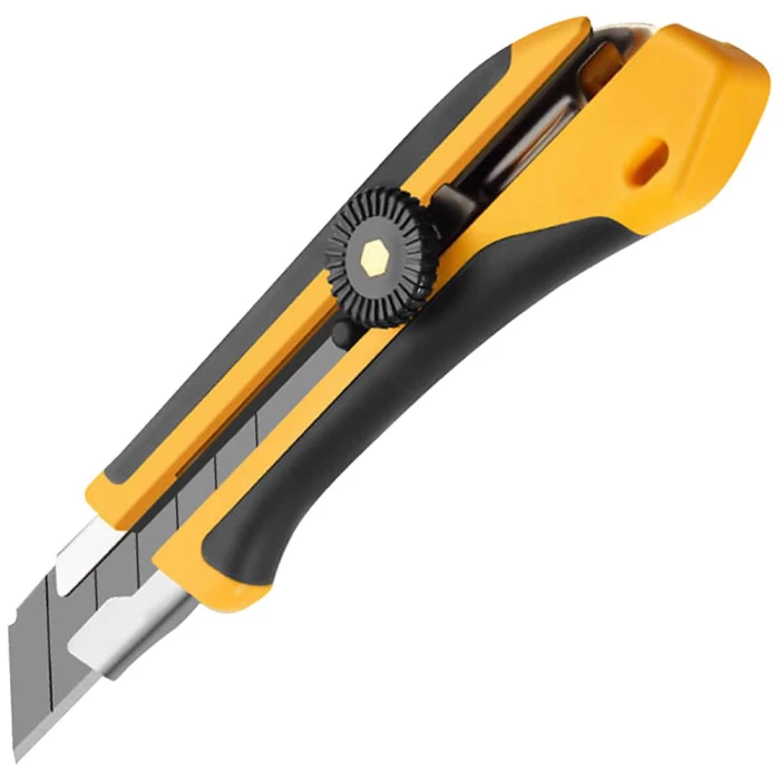 Hobbykniv med 25 mm bræk-af blade. B-CXH med skruelås, Soft Grip og med de nye sorte ultraskarpe blade.
