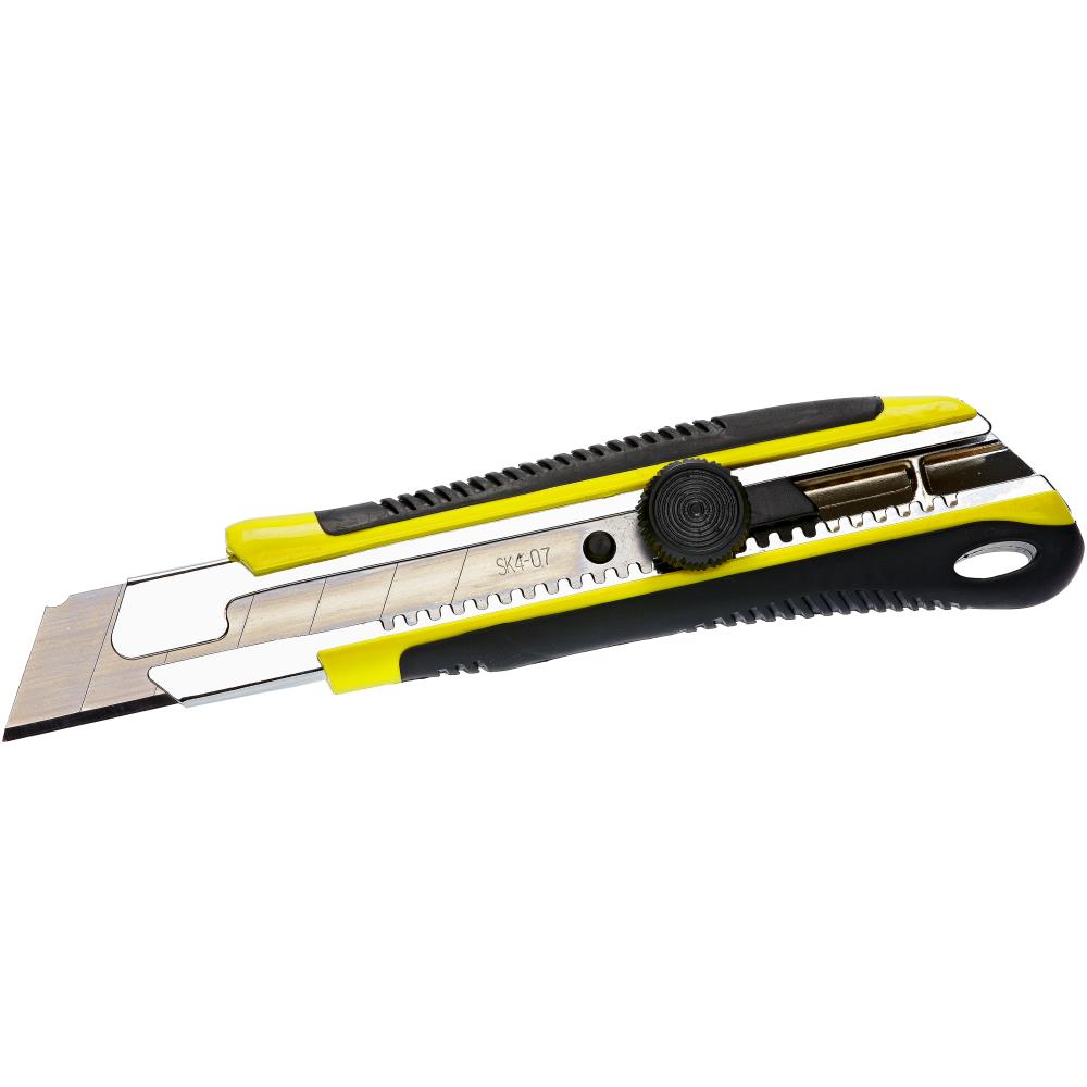 Assist 25 mm kniv med skruelås og gummigreb. 2 ekstra blade i magasin.