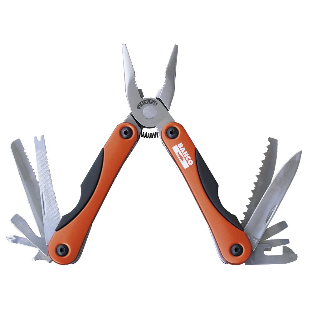 Heavy Duty aluminiumskrop. Anodiseret orange finish. 18 funktioner. Rustbeskyttet rustfaste værktøjer. Opbevaringsetui af lærred, forsynet med bæltestrop.