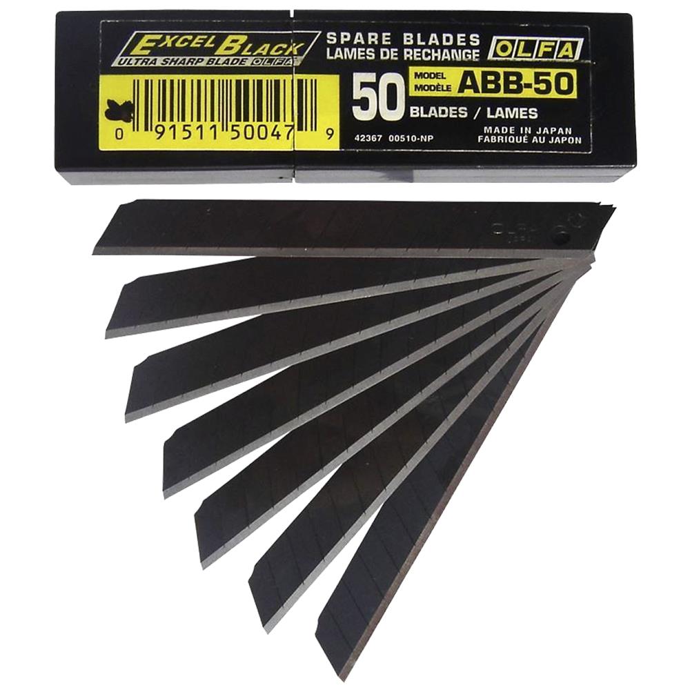 Olfa bræk-af knivblade 9mm sorte ABB-50, pk/50stk