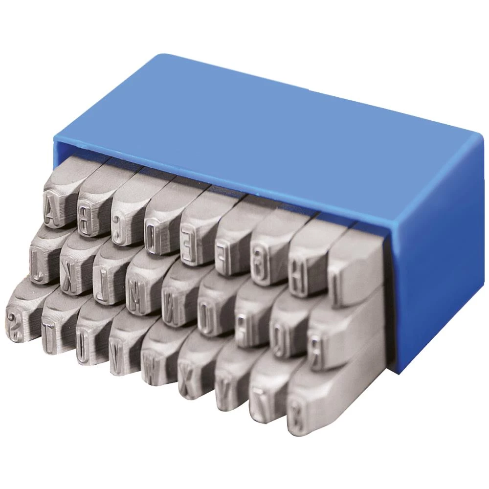 Sæt med bogstavsprægestempler A-Z+& med fritslebne hjørner så man nemt kan vurdere placeringen af stemplet på emnet. Hårdhed 58-61 HRC anvendes til mærkning på stål op til 600-800 N/mm². Leveres i blå plastæske med tydelig mærkning på alle stempler. Fås i flere størrelser.