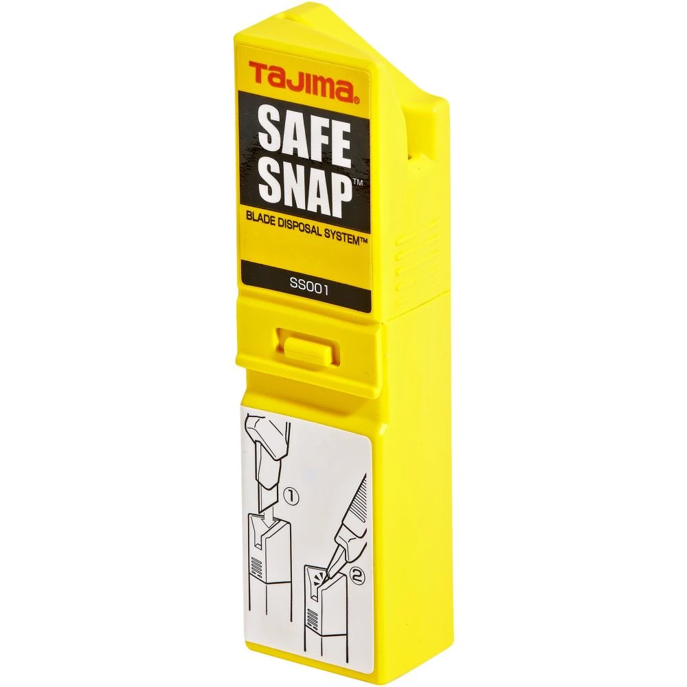 Tajima sikkerhedsboks til brugte knivblade. Med slids, så man kan brække det brugte segment direkte ned i boksen, uden at røre det. Passer både til 9, 18 og 25 mm knivblade. Kan åbnes og tømmes for indhold. Praktisk størrelse, nem at have i lommen.
