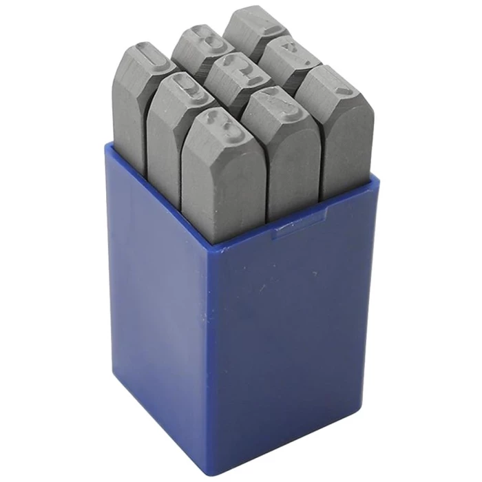 Sæt med talprægestempler 0-9 med fritslebne hjørner så man nemt kan vurdere placeringen af stemplet på emnet. Hårdhed 58-61 HRC anvendes til mærkning på stål op til 600-800 N/mm². Leveres i blå plastæske med tydelig mærkning på alle stempler. Fås i flere varianter med forskellig karakterhøjde.