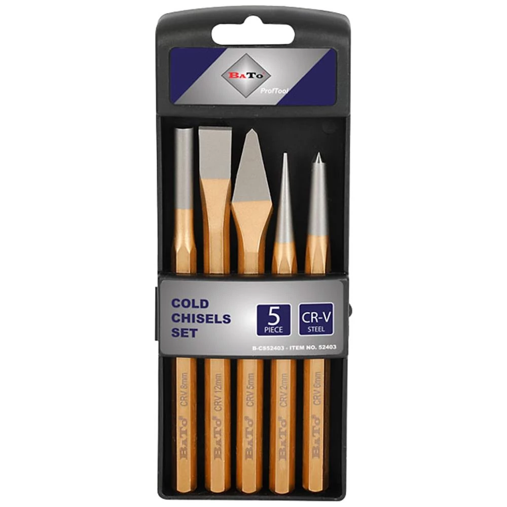 Mejsel-, kørner- og dyknaglesæt, 5 dele i etui