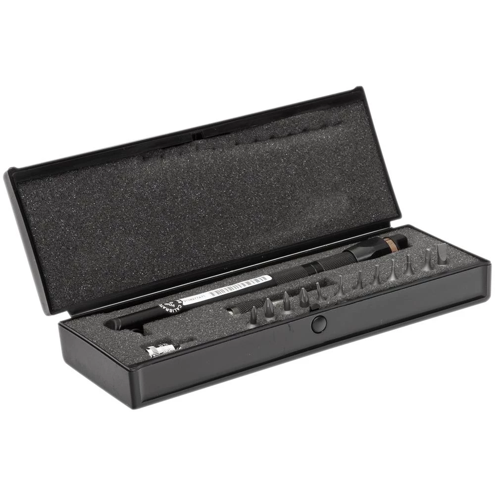Mini-momentnøglesæt bestående af en justérbar mini-momentnøgle med fast indv. 6kt., 1/4″ 6kt top, Quick-release bitsholder samt forskellige bits (6kt, PH, PZ, Torx og lige kærv). Sættet leveres i flot æske.