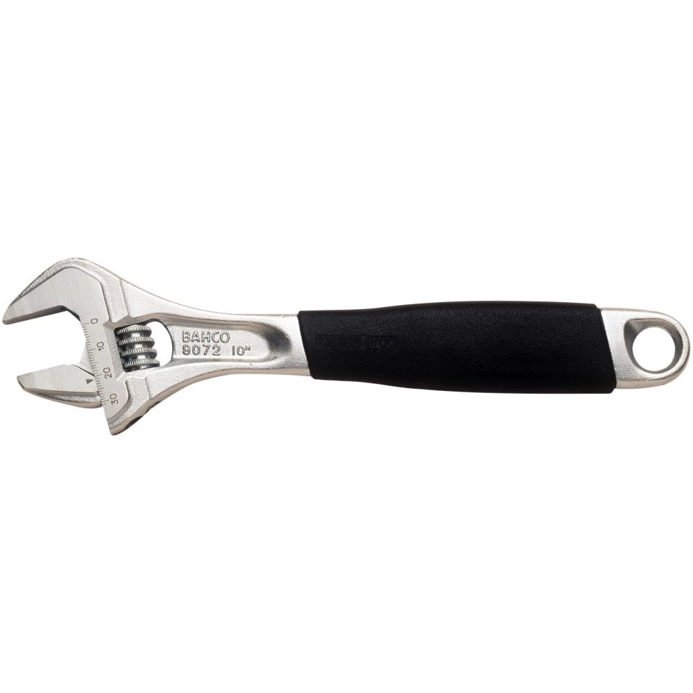 Skiftenøgle, udviklet i henhold til Bahcos ERGO program. Overholder DIN 3117, BS 6333, ISO 6787 og ASME B107.8M-1996. Højtlegeret stål. Forsynet med termoplastisk komfort-håndtag. Målskala i mm for nem forudindstilling. Med kæbestav helt skjult i skaftet. Det vinklet hoved på 15° gør skiftenøglen egnet hvor pladsen er trang. Forsynet med stilleskrue. Forkromet, præcisionshærdet og rustbeskyttet. Fås i flere dimensioner.