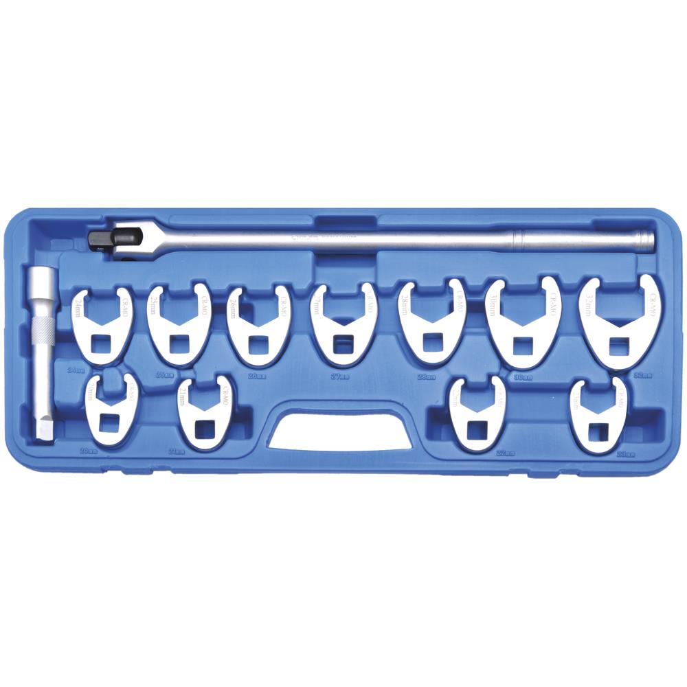 1/2″ BGS hanefodsnøglesæt med 13 dele. Sættet indeholder størrelserne 20, 21, 22, 23, 24, 25, 26, 27, 28, 30 og 32 mm samt håndtag og adapter og leveres i praktisk opbevaringsæske.