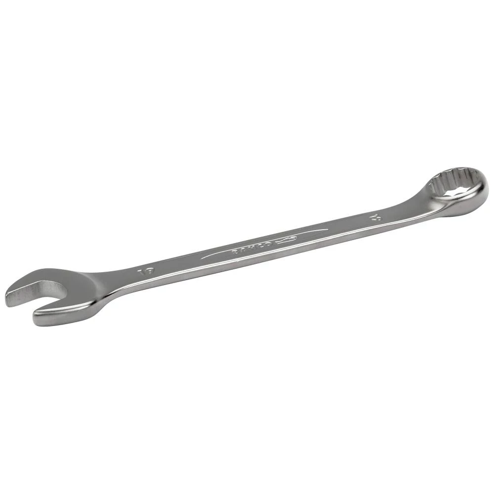 Metrisk ring-/gaffelnøgle med samme dimension i hver ende. 15° gaffelvinkel med slankt hoved til brug hvor pladsen er trang. Ring med 15° vinkelforsætning og indv. 12kt Dynamic Drive-profil mod deformering af bolte og møtrikker. U-formet greb for bedre komfort. Fremstillet af højtlegeret stål og matforkromet. Tydelig dimensionsangivelse på nøglen. ISO 691, ISO 7738, ISO 3318, ISO 1711-1 og DIN 3113. Fås i flere dimensioner.