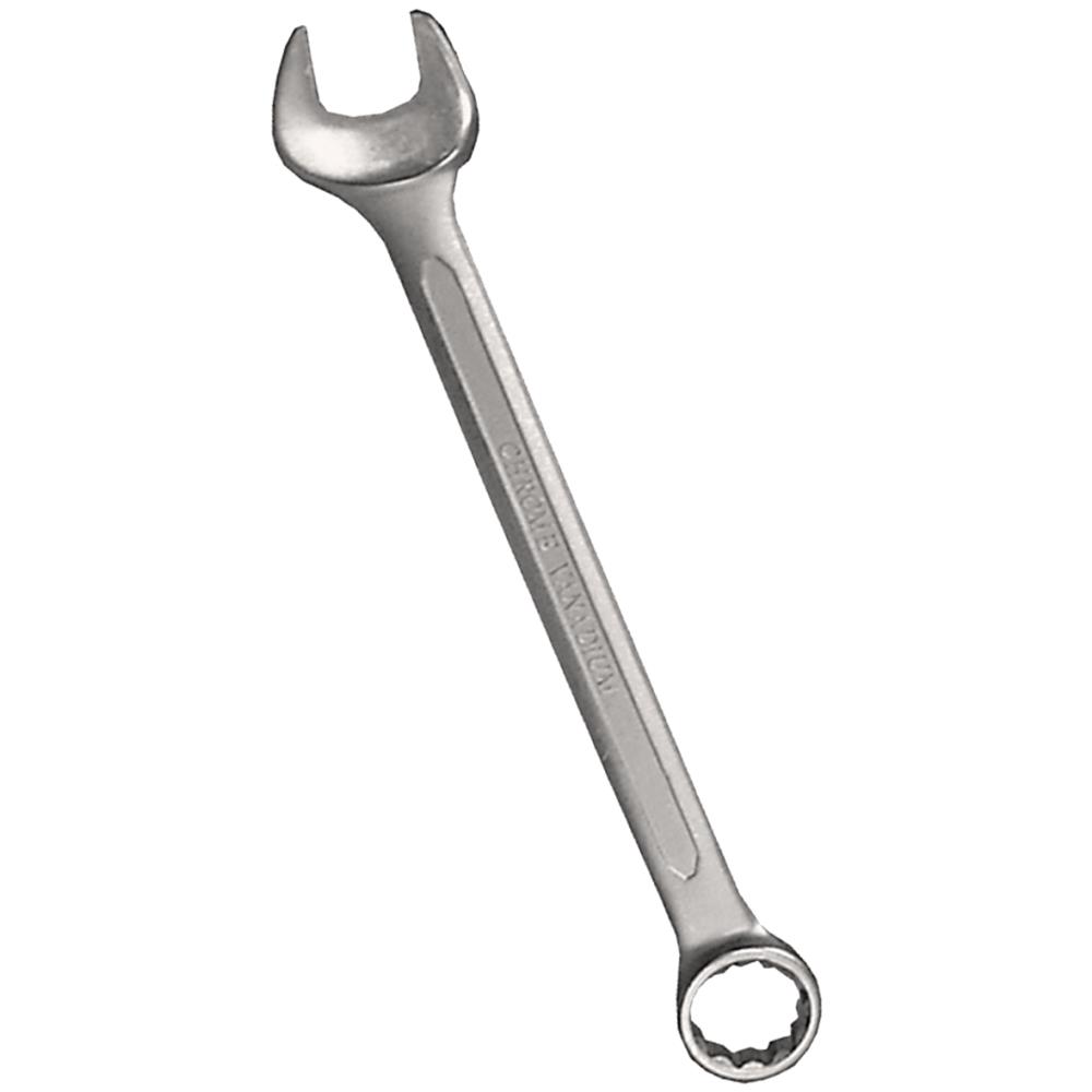 Ringgaffelnøgle med samme tomme-dimension i hver ende og 15° vinkling. Fremstillet i krom-vanadiumstål med satineret overflade. DIN 3113 standard. Fås i flere dimensioner.