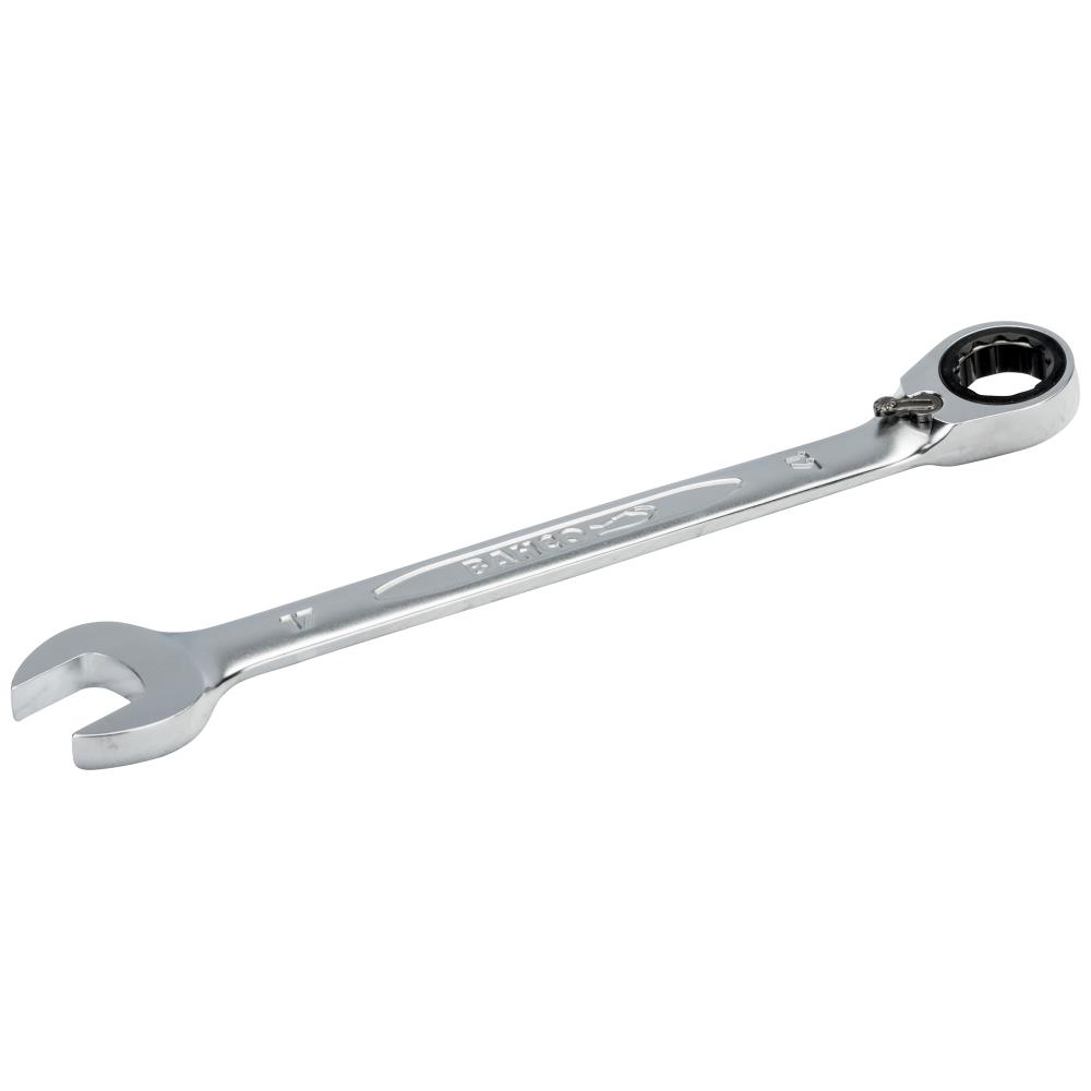 Metrisk ring-/skraldenøgle med samme dimension i hver ende. 15° gaffelvinkel til brug hvor pladsen er trang. 15° forsat ring med skraldefunktion og omskifter for højre-/venstreomløb. 12kt Dynamic Drive-profil mod deformering af bolte og møtrikker. Fremstillet af højtlegeret stål, matforkromet. Tydelig, tovejs dimensionsangivelse for nem identifikation. ISO 1711-1 og DIN 3113. Fås i flere dimensioner.