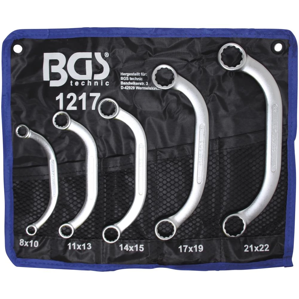 BGS starternøglesæt med 5 dele: 8×10, 11×13, 14×15, 17×19 og 21×22 mm.