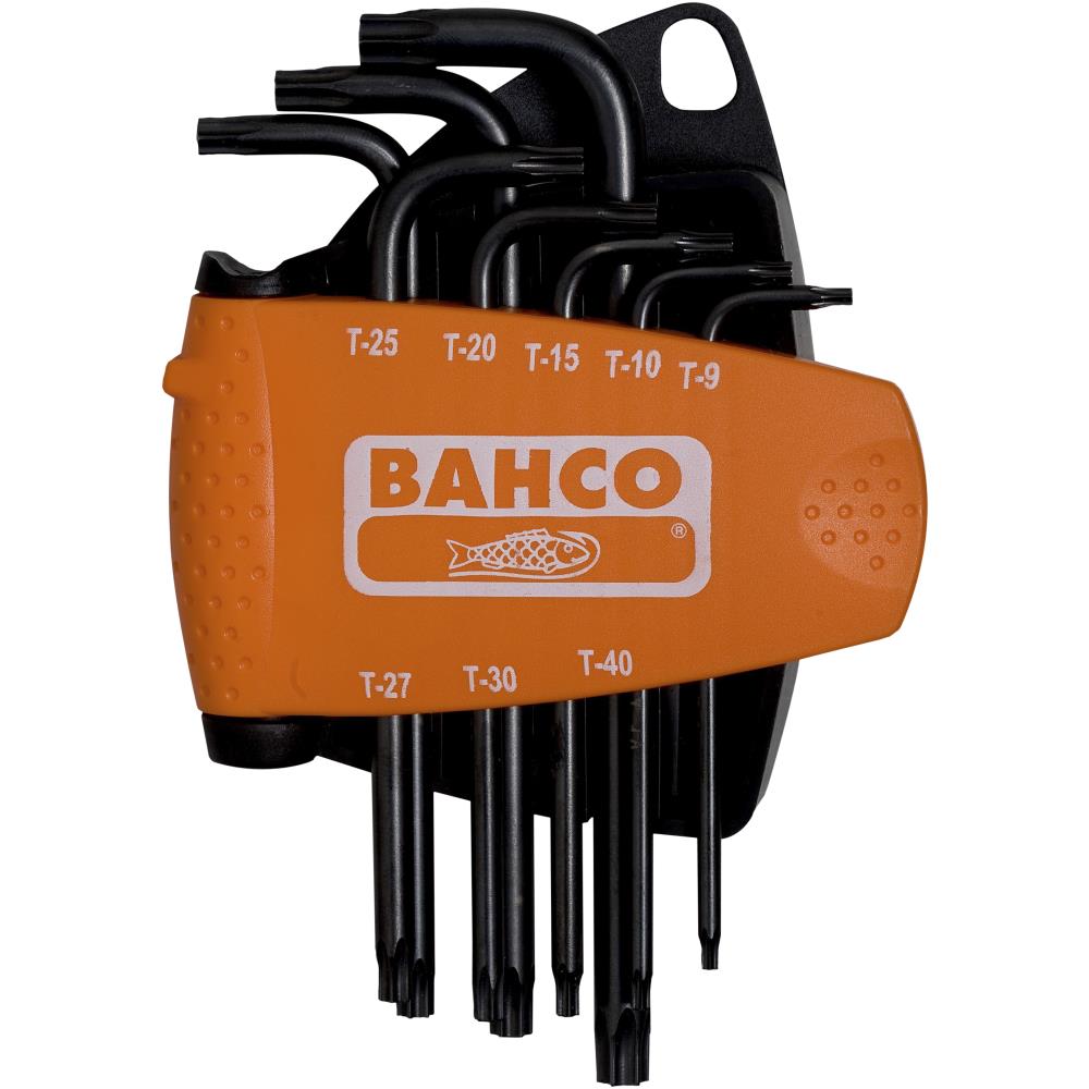 Torx-nøglesæt med 8 dele. Vinklede Torx nøgler i lang udførsel for større moment og til brug hvor pladsen er trang. Dimensionsangivelse stemplet i hver nøgle for hurtig identifikation af størrelse. Fremstillet af fuldt hærdet, højtlegeret stål med sort finish. Leveres i tokomponent holder med let adgang – en variant fås med magnetiseringsboks indbygget i holderen. Sættet indeholder dimensionerne: T9, T10, T15, T20, T25, T27, T30 og T40.