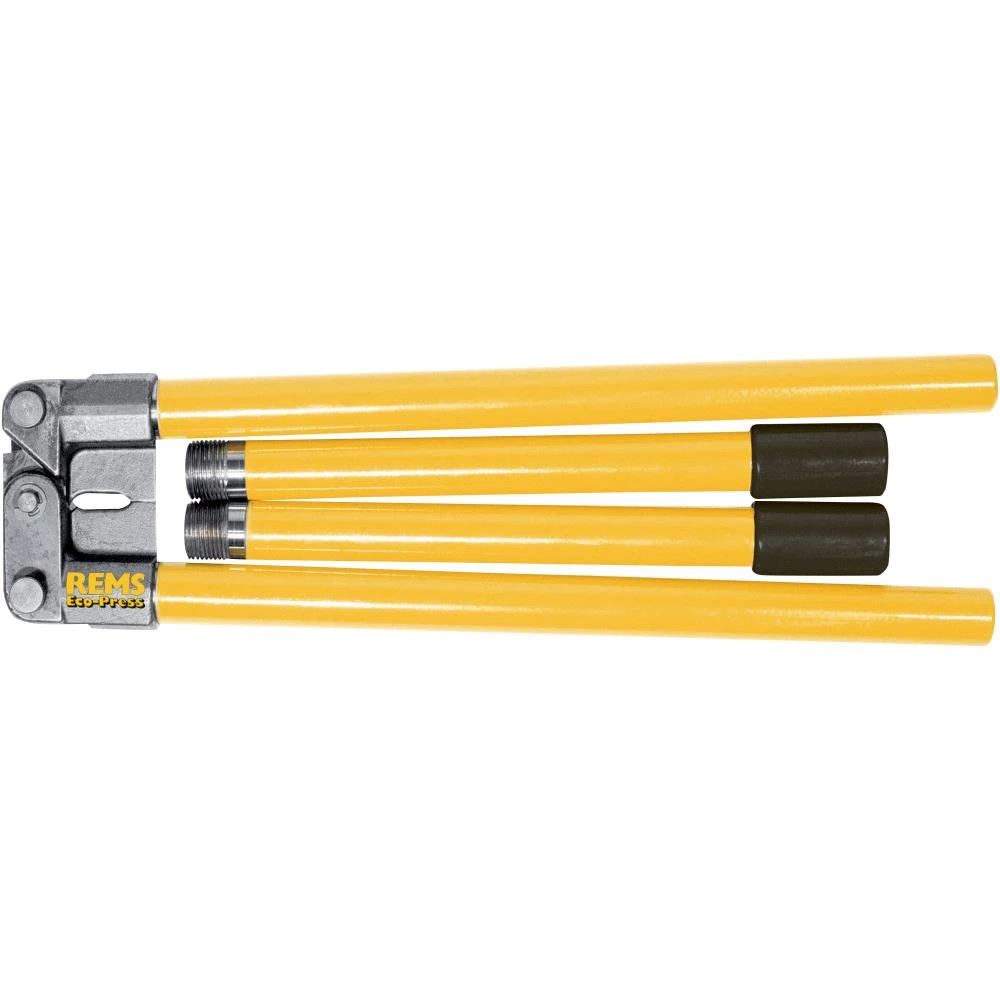 Rems Eco Press universal op til Ø 26 mm. Lynhurtig, sikker pressning. Kompakt, let, og nem at håndtere. Værktøj med korte håndtag. Kun 1,6 kg. Derfor brugbar overalt, i fri hånd, over hovedet, på snæver plads. Presstangen er sikkert fastgjort med rastbolte. Håndtagene, som kan adskilles er til individuel tilpasning af kraftoverførslen ved forskelligt kraftbehov, som er nødvendigt til de respektive pressfitting-systemer.