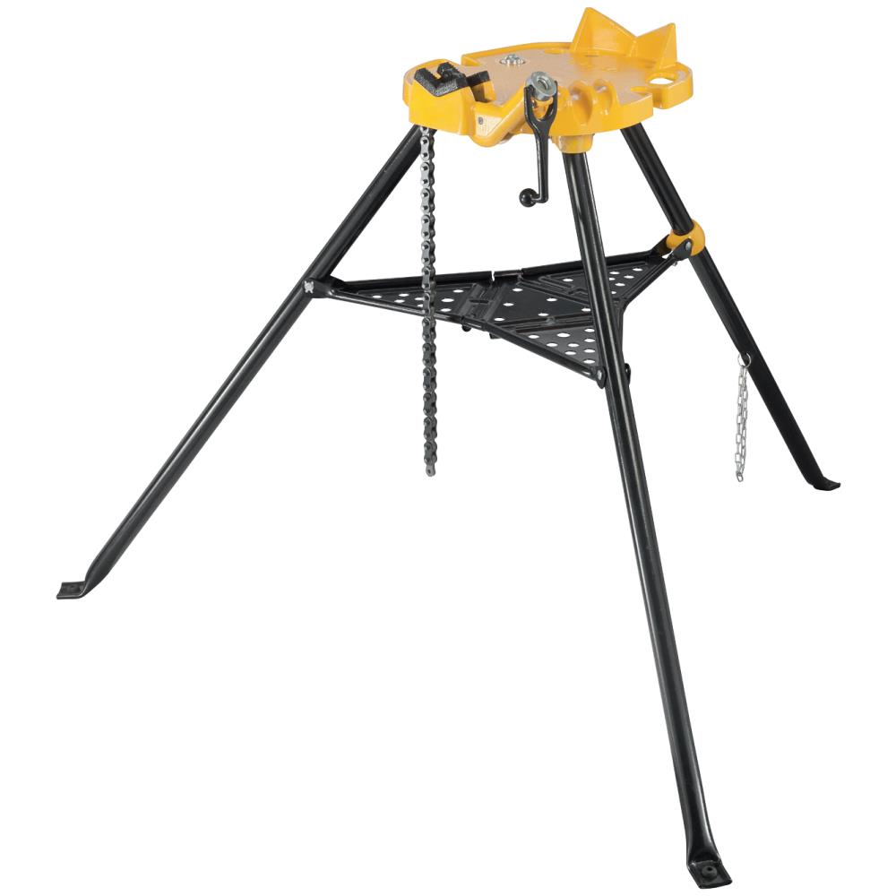 Stabil rørbænk, der er nem at bære. Med integreret kæde-rørskruestik på sammenklappeligt 3-bens-stativ. Med praktisk fralægningsplade. Til håndværk og industri. Til byggeplads og værksted. Rør spændes sikkert indtil 6″. Anvendelig overalt. Stabil, arbejdsplade i vridfri støbegodskontruktion med integreret kæde-rørskruestik, rørstøtte, værktøjsholdere, 3 bukkenordninger til at bukke rør Ø 10-26 mm, Ø 3/8-3/4″, spændehoved. Specielt tandet dobbeltspændebakke, let at udskifte, prismeformet, til sikker spænding af rør i hele spændeområdet. Specialhærdet for lang levetid. Spændekæde med stabile kædeled, let at spænde vha. hurtigmontagesystem og trapezgevindspindel. Godt tilgængeligt arbejdsområde foran kæde-rørskruestik til fri gennemsvingning også af langt værktøj. Særlig velegnet til rørinstallation f.eks. til at overskære, gevindskære, bukke og montere. Indstilleligt spændehoved til at spænde rørbænken mellem loft og gulv, for særlig sikker stabilitet. Gennemprøvet 3-bens-stativ for sikker stabilitet, sammenklappeligt, til nem opstilling og let transport. Praktisk fralægningsplade til værktøj og arbejdsmateriale. Leveringen omfatter Rems Aquila 3B. Rørbænk med kæde-rørskruestik til at spænde rør Ø 10-165 mm, Ø 1/8-6″. Arbejdsplade med integreret kæde-rørskruestik med dobbelt spændebakke, rørstøtte, værktøjsholdere, 3 stk bukkeanordninger til at bukke rør Ø 10-26 mm, Ø 3/8-3/4″, spændehoved. Sammeklappeligt 3-bens-stativ med fralægningsplade. I karton.