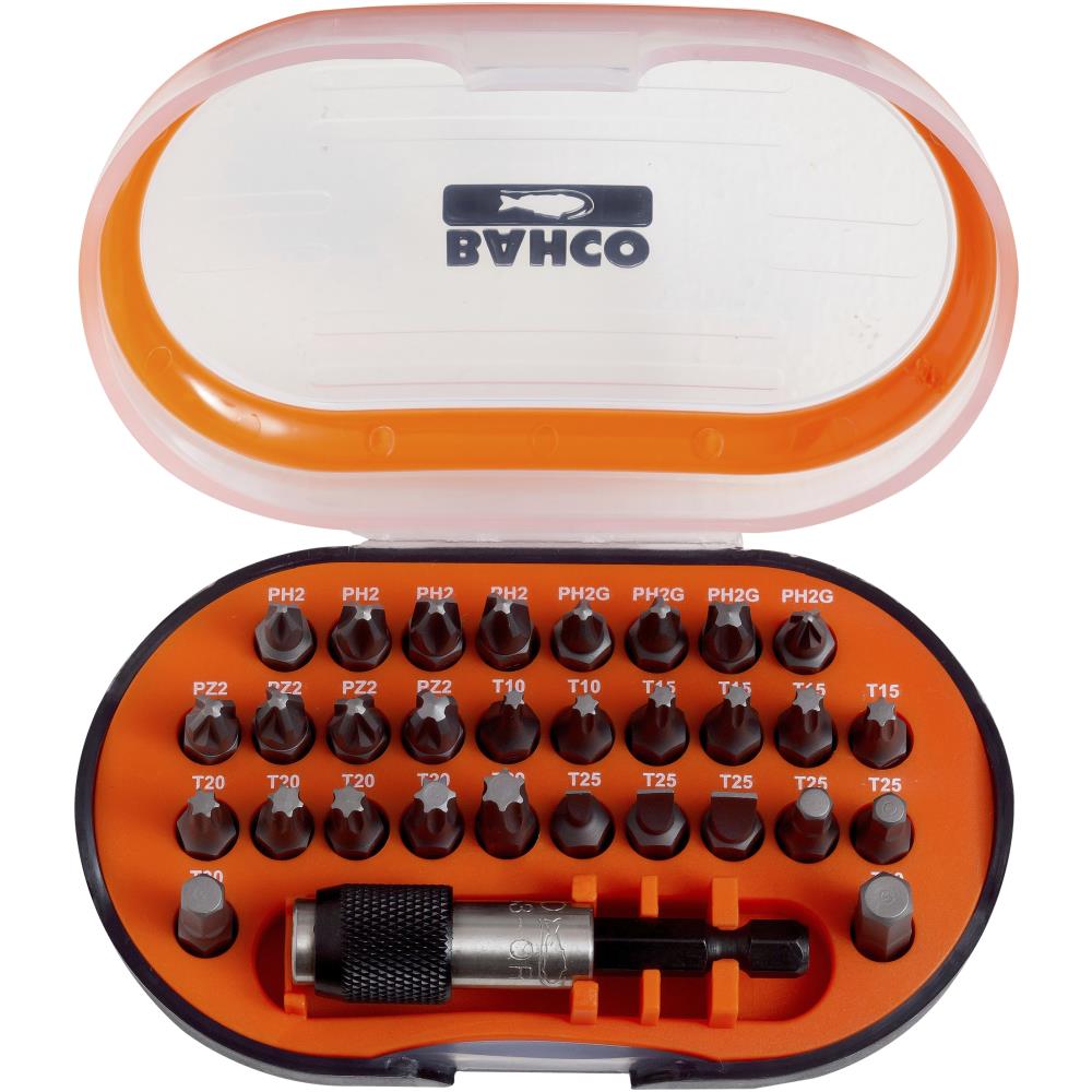Bitssæt med 31 dele: magnetisk bitsholder og 30 bits: Phillips, Pozidriv, Torx, Ligekærv og 6kt. Højtlegeret stål, zinkfosfat-finish.