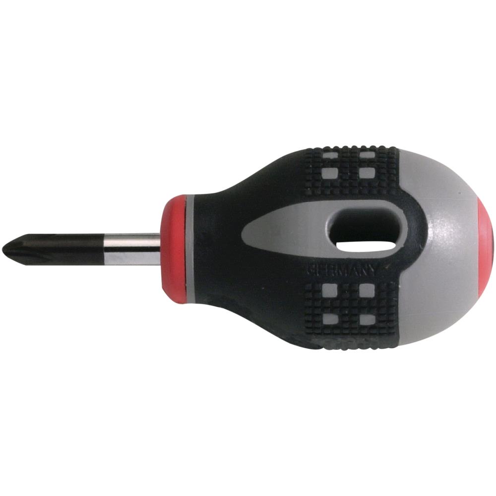 Ergo skruetrækker til Phillipsskruer. Stubby/tumling (kort type) til arbejde på trange steder. Forkromet og helhærdet klinge for høj beskyttelse mod rustdannelse og lang levetid. Fosfateret spids for større nøjagtighed. 3-komponent håndtag i blødt materiale med nubret overflade giver et godt greb og højere vridmoment. Integreret ophængshul. Nem identifikation af spids takket være det farvekodede håndtag med symbol. Standarder: ISO 8764 og DIN 5260. Fås i flere størrelser.