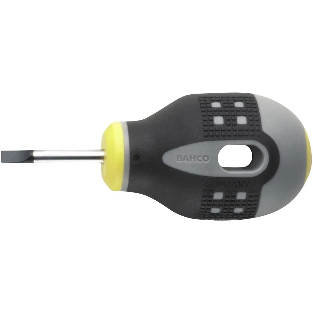 Ergo skruetrækker til ligekærvskruer. Stubby/tumling (kort type) til arbejde på trange steder. Forkromet og helhærdet klinge for høj beskyttelse mod rustdannelse og lang levetid. Fosfateret spids for større nøjagtighed. 3-komponent håndtag i blødt materiale med nubret overflade giver et godt greb og højere vridmoment. Integreret ophængshul. Nem identifikation af spids takket være det farvekodede håndtag med symbol. Standarder: ISO 2380 og DIN 5264. Fås i flere størrelser.