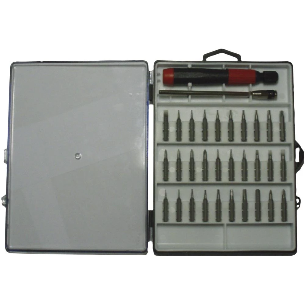 Juveler-skruetrækkersæt med 30 dele. Indeholder: lige kærv 1,0 – 1,5 – 2,0 – 2,5 – 3,0 – 3,5 – 4,0 mm, Torx TX4 – TX5 – TX6 – TX7 – TX8 – TX9 – TX10 – TX15 – TX20, Phillips PH000 – PH00 – PH0 – PH1, Pozidriv PZ0 – PZ1 samt 6kt 0,7 – 0,9 – 1,3 – 1,5 – 2,0 – 2,5 – 3,0 – 4,0 mm. Leveres i opbevaringsboks.