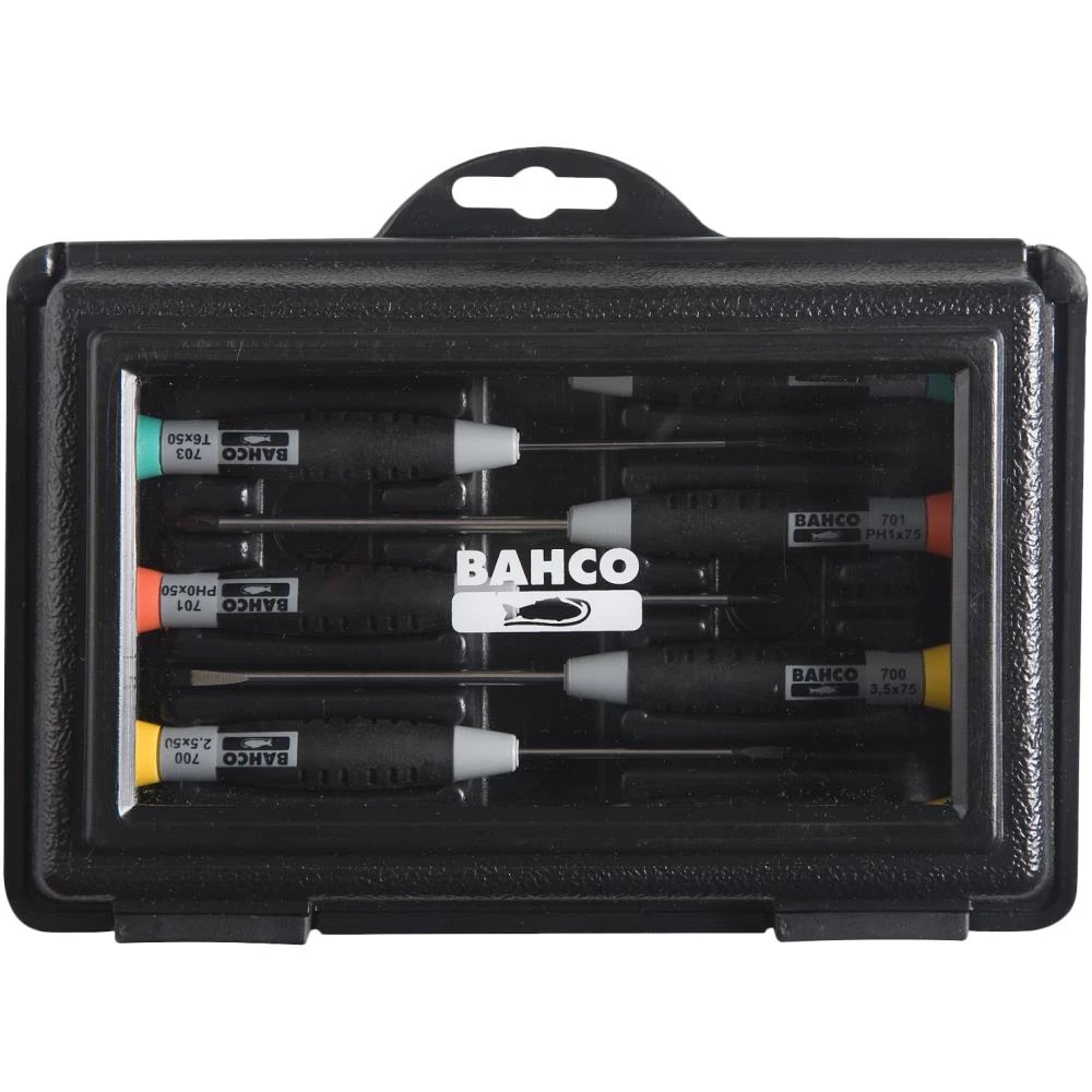 Præcisionsskruetrækkersæt med 7 dele med præcisionsgreb til ligekærv- og Phillipsskruer. Særligt designet til præcisionsarbejde, især i mekanik- og elektronikbranchen. Forkromet stålklinge for høj beskyttelse mod rustdannelse. Størrelse og varenummer lasermarkeret på klingen. Maskinbearbejdet fosfateret spids sikrer høj præcision. Komfortgreb med to-komponent håndtag, som overfører et højt moment til klingen. Roterende top for hurtige, præcise og snilde fingerbevægelser i forbindelse med skruning. Farvekode på toppen og markering på håndtag for hurtig identifikation af spids. Indhold: kærv 1,5×50 mm / 2,5×50 mm / 3,5×50 mm, Phillips PH0×50 mm / PH1×75 mm / Torx T6×50 mm / T8×50 mm.